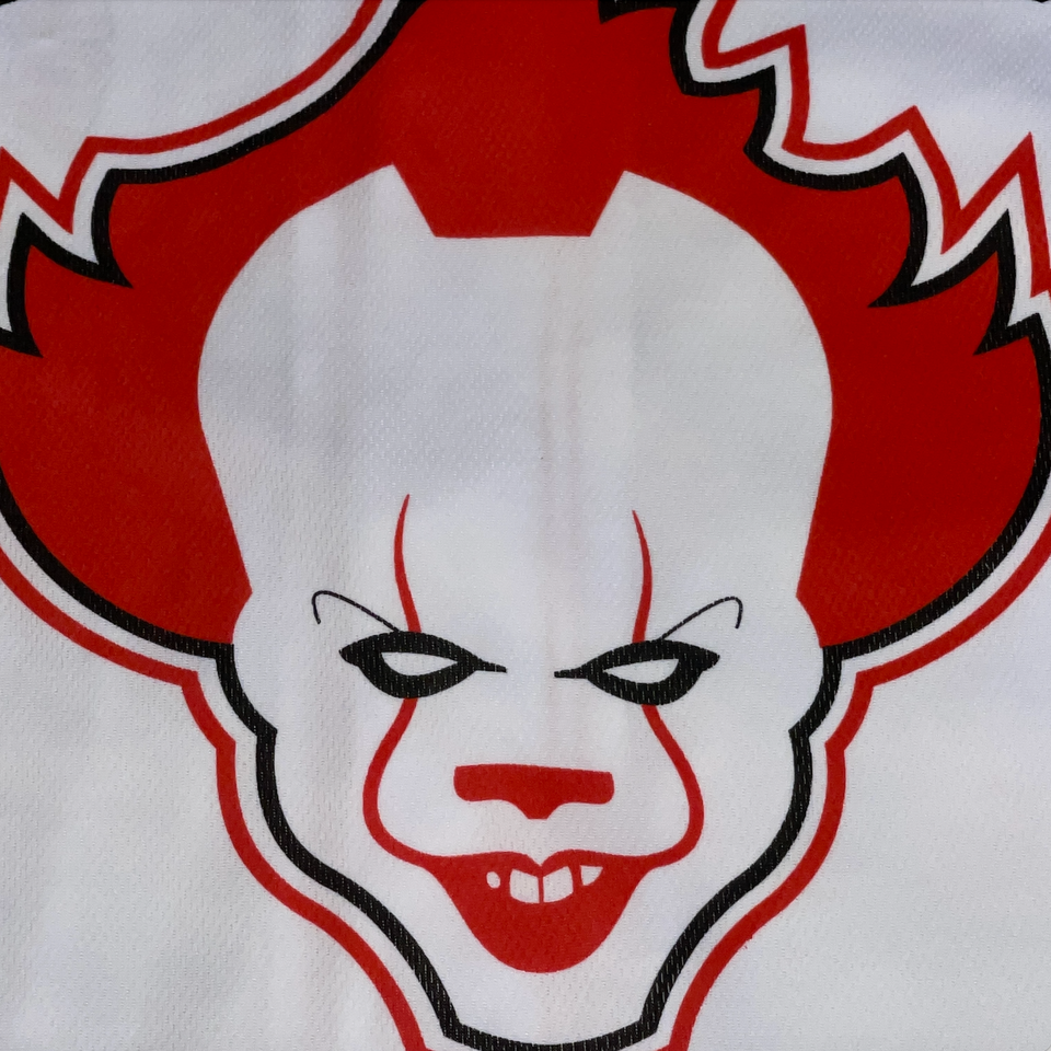 New without tags. Size tag XXL. Measures 26 inches across the chest and 30 inches overall length. Button up jersey style. Very cool graphics. White with red trim. Perfect for halloween or for any It fan! Please see all gallery photos. We are a smoke free, pet friendly home. Have a great day!