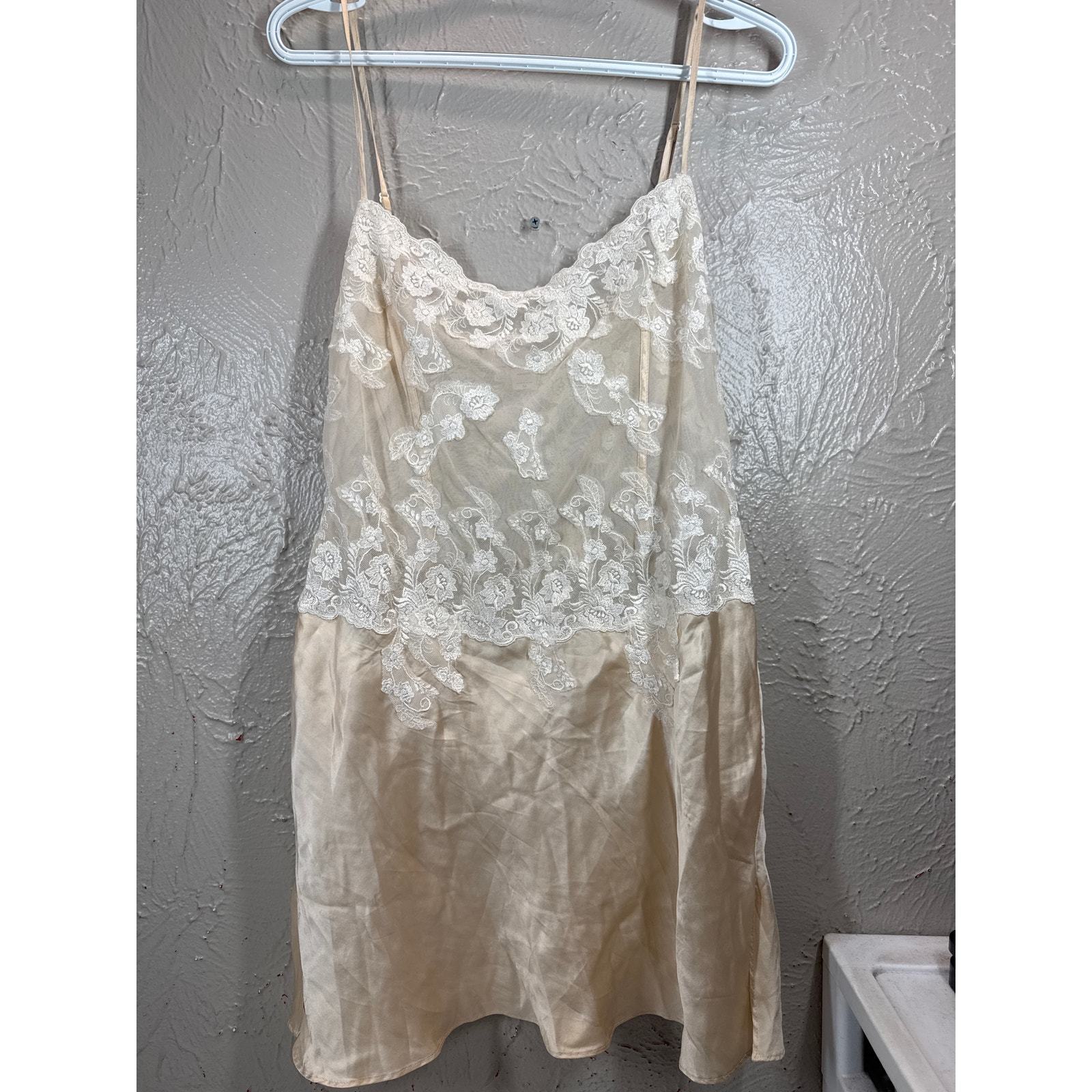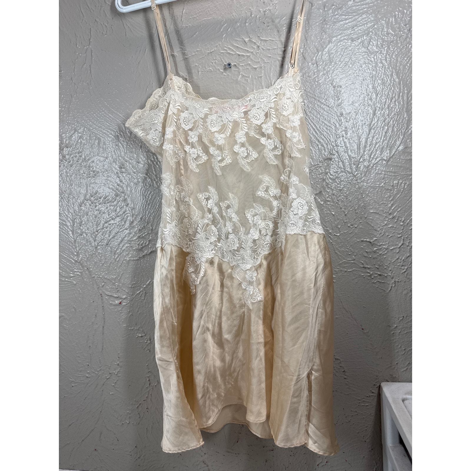 Victoria's Secret Womens Satin Cami Nightie Cream Floral Lace Mesh Size Medium