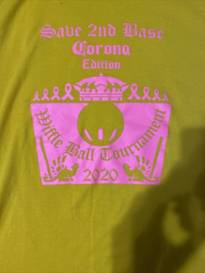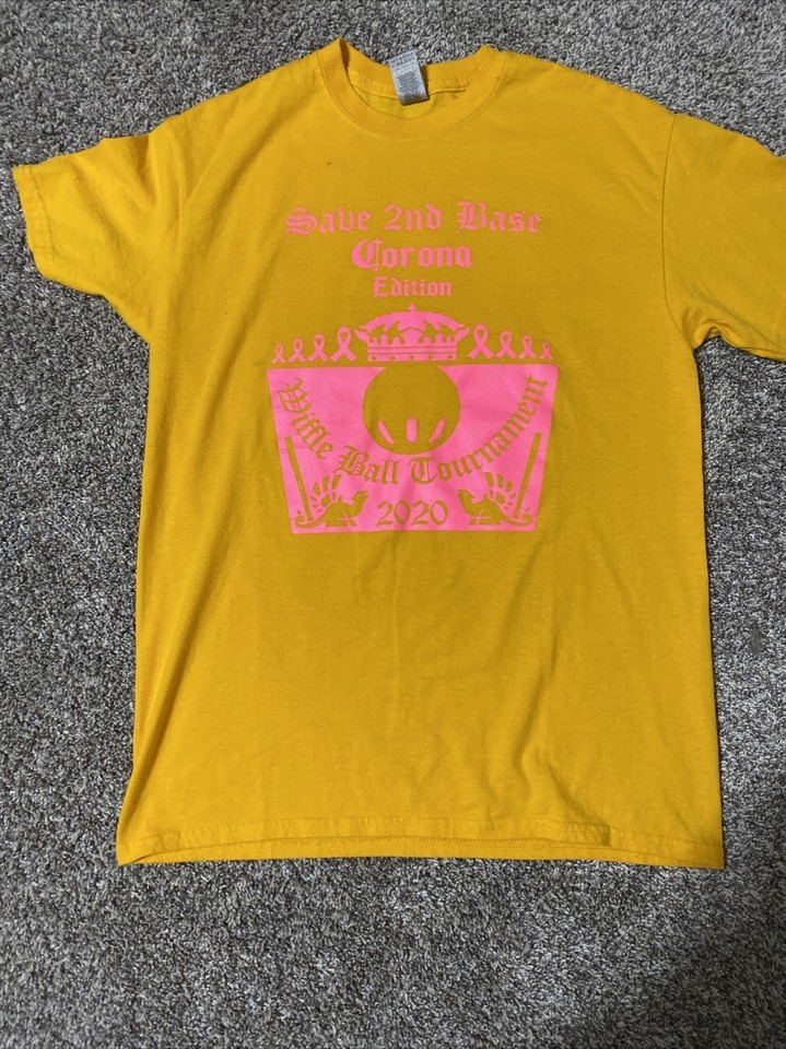 Medium ?save second base? corona edition wiggle ball tournament shirt.
