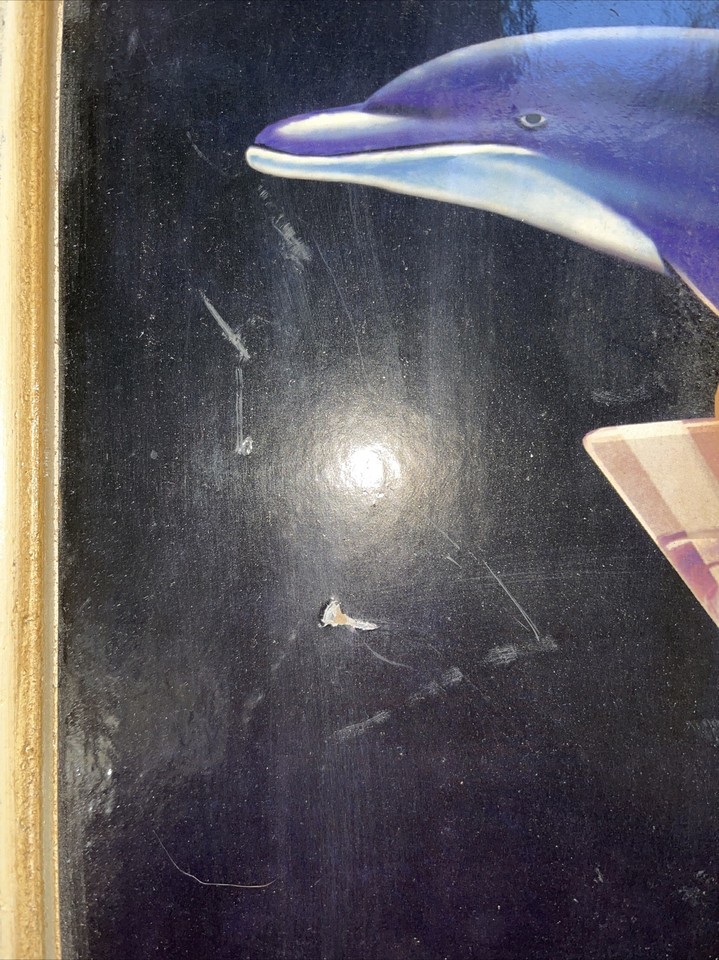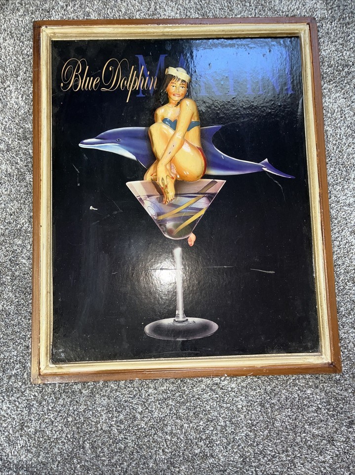 VINTAGE advertising RELIEF MARTINI BLUE DOLPHIN ON WOOD FRAME 22x18x1