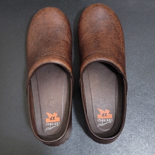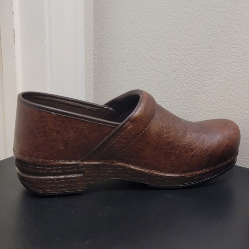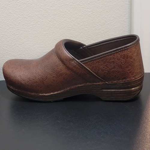 Dansko XP Womens Tooled Leather Brown Floral Professional Clogs 10 US / 40 EUR