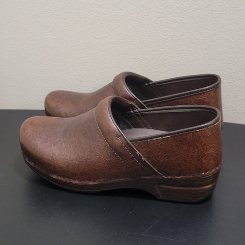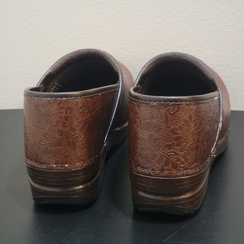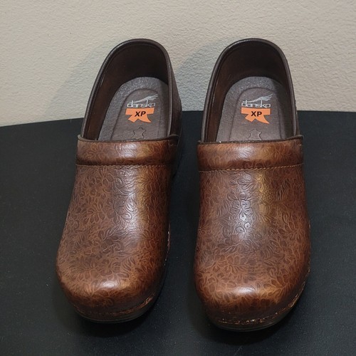Excellent Condition Authentic Dansko XP Brown Floral Tooled Clogs. Manufacturer Size 40 EUR / 9.5 - 10 US.