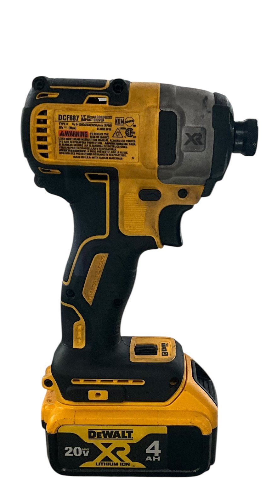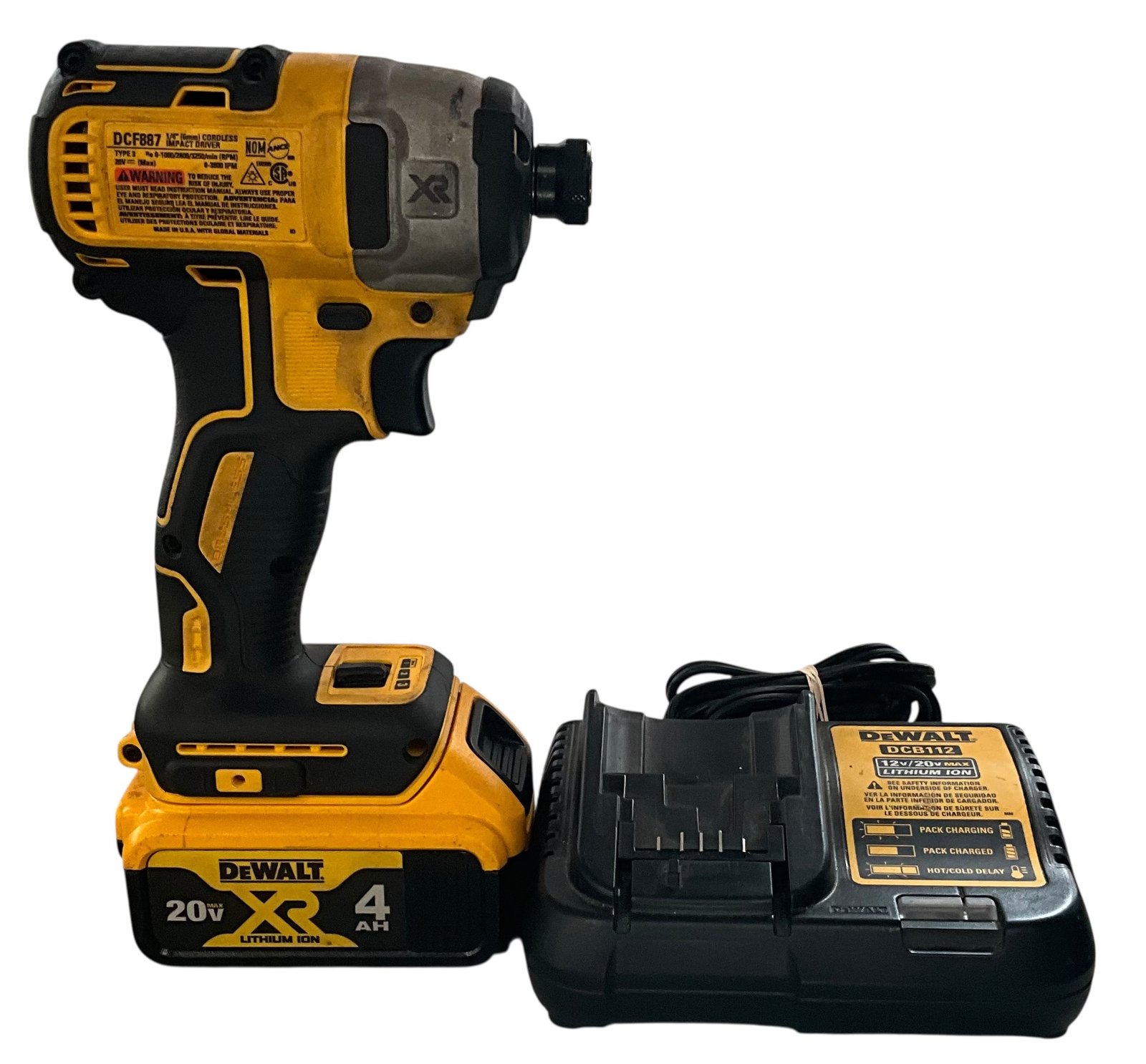Category: Power equipmentType: Impact DriverBrand: DewaltModel number: DCF887Model name: Imapct DriverSize: 1/4Color: YellowPower source: BatteryBattery Included: yesCase included: yesCharger Included: yesVoltage: 20VNumber of pieces: 2Condition:Used