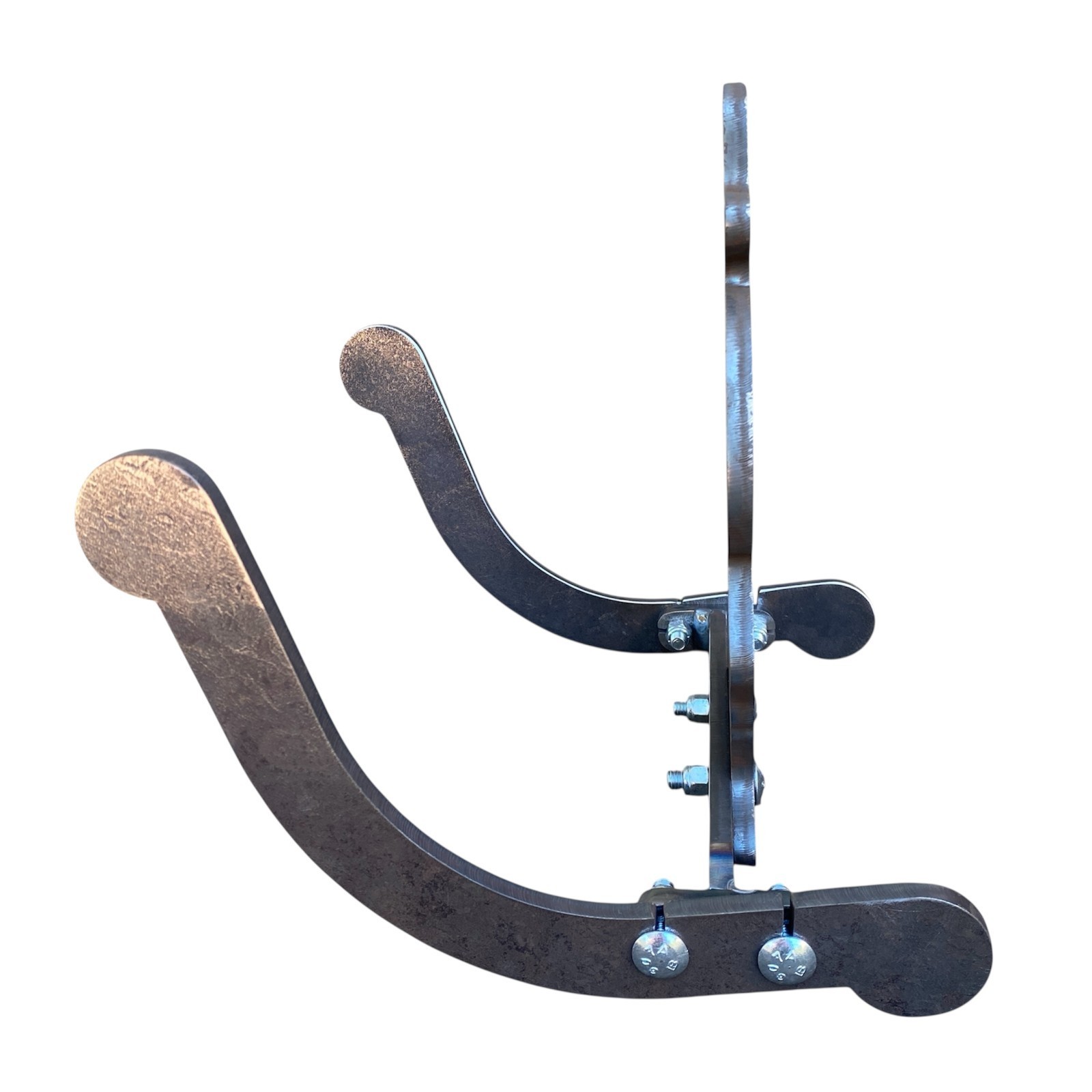 Set includes one 3/8" AR500 8"x12" Cowboy CAS body, two 3/8" AR500 Curved Ground Stand Legs, one 3/8" AR500 Crossbeam Mounting Plate, six 3/8" bolts, and six 3/8" lock nuts. Disassembly of these pieces allows for easy transport and storage.