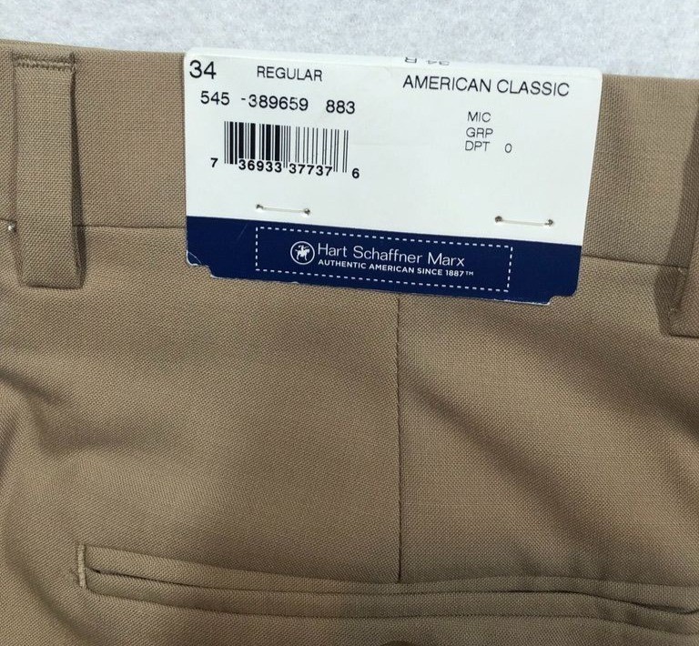 Hart Schaffner Marx 100% Worsted Wool Dress Pants Khaki Unhemmed Men's Size 34 R