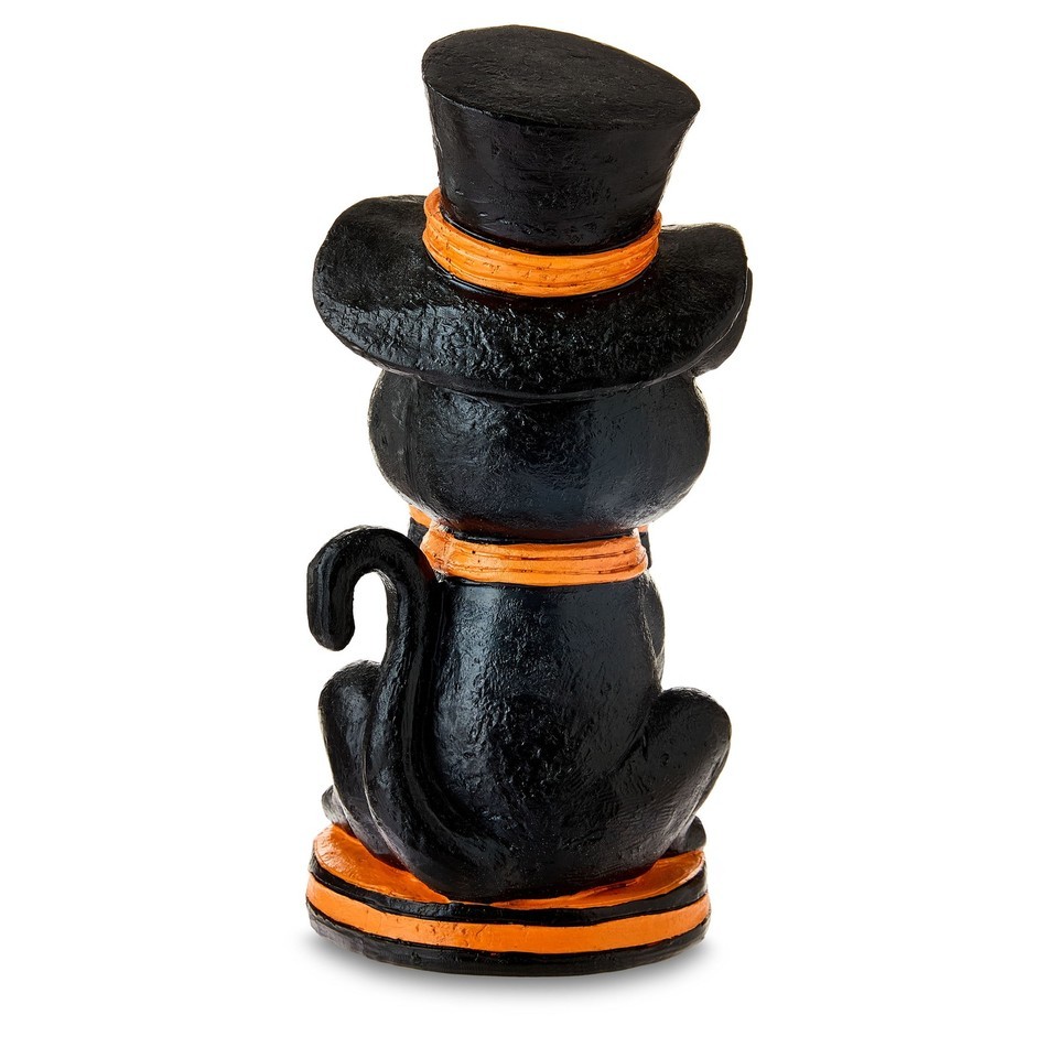 Resin Vintage Cat Tabletop Decor, Black & Orange, 10", Halloween