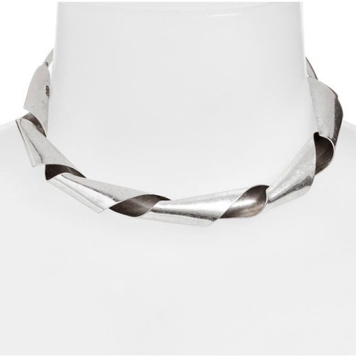 Rustic-finished metal ribbon twists and twirls around your collar for a chic industrial-inspired necklace to elevate your wardrobe.