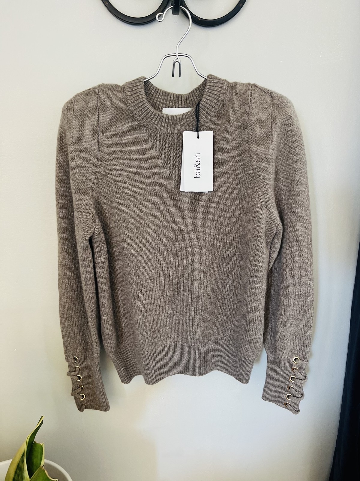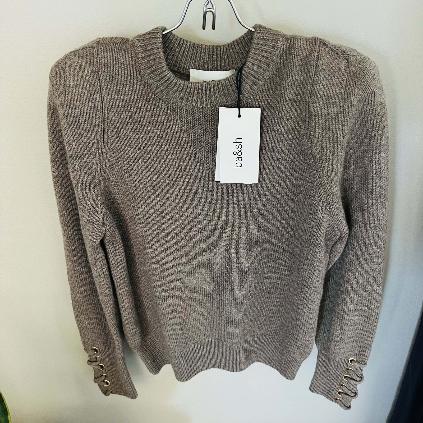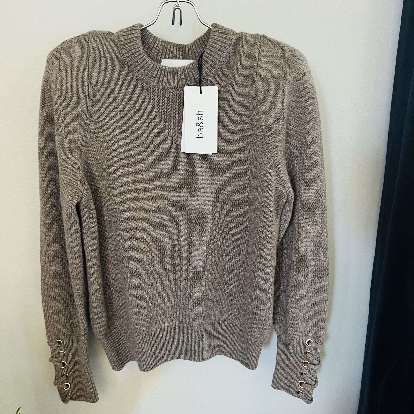 BA&SH Keane Lace-Up Cuff Wool & Cotton Sweater, Tan, Size Small, DESIGNER, NWT