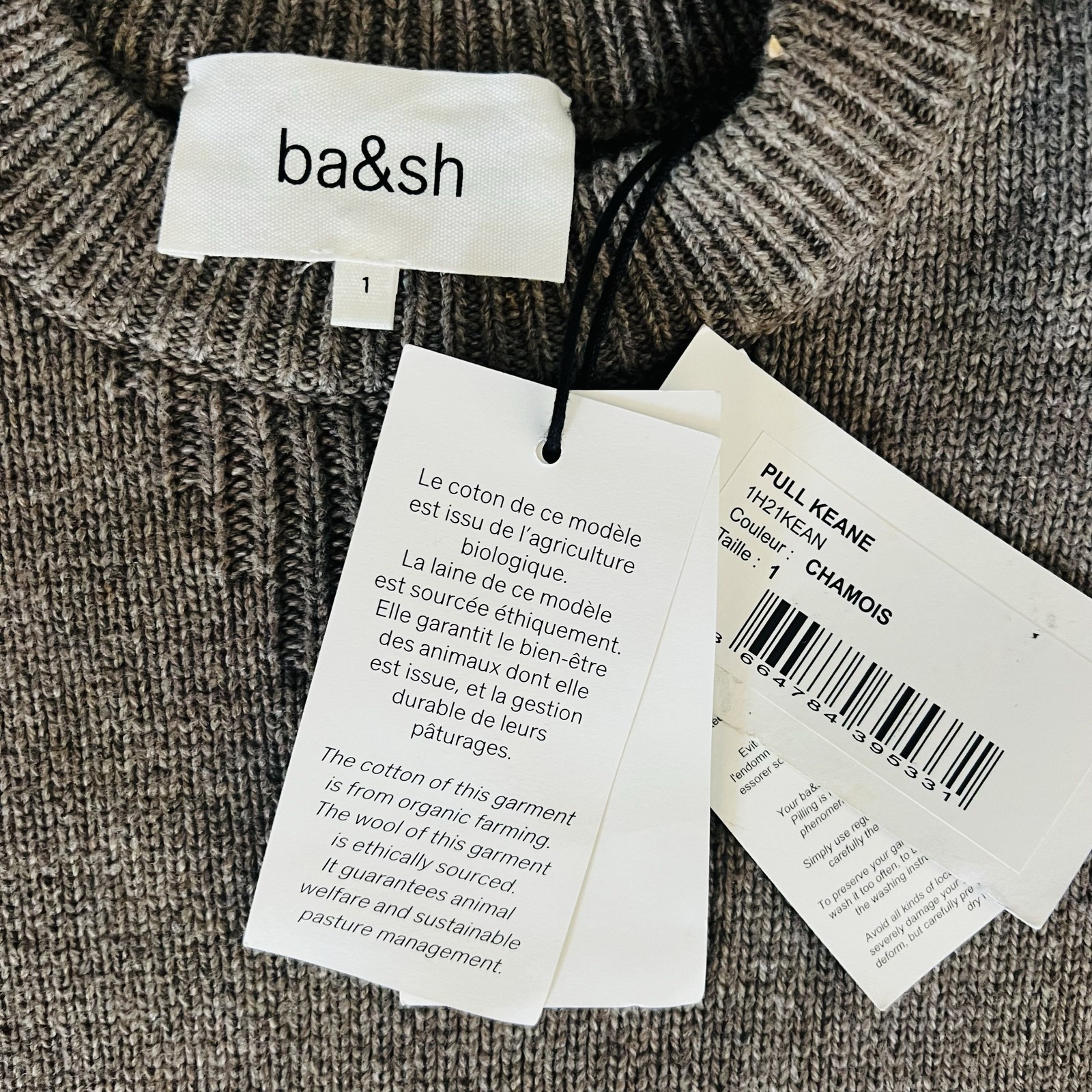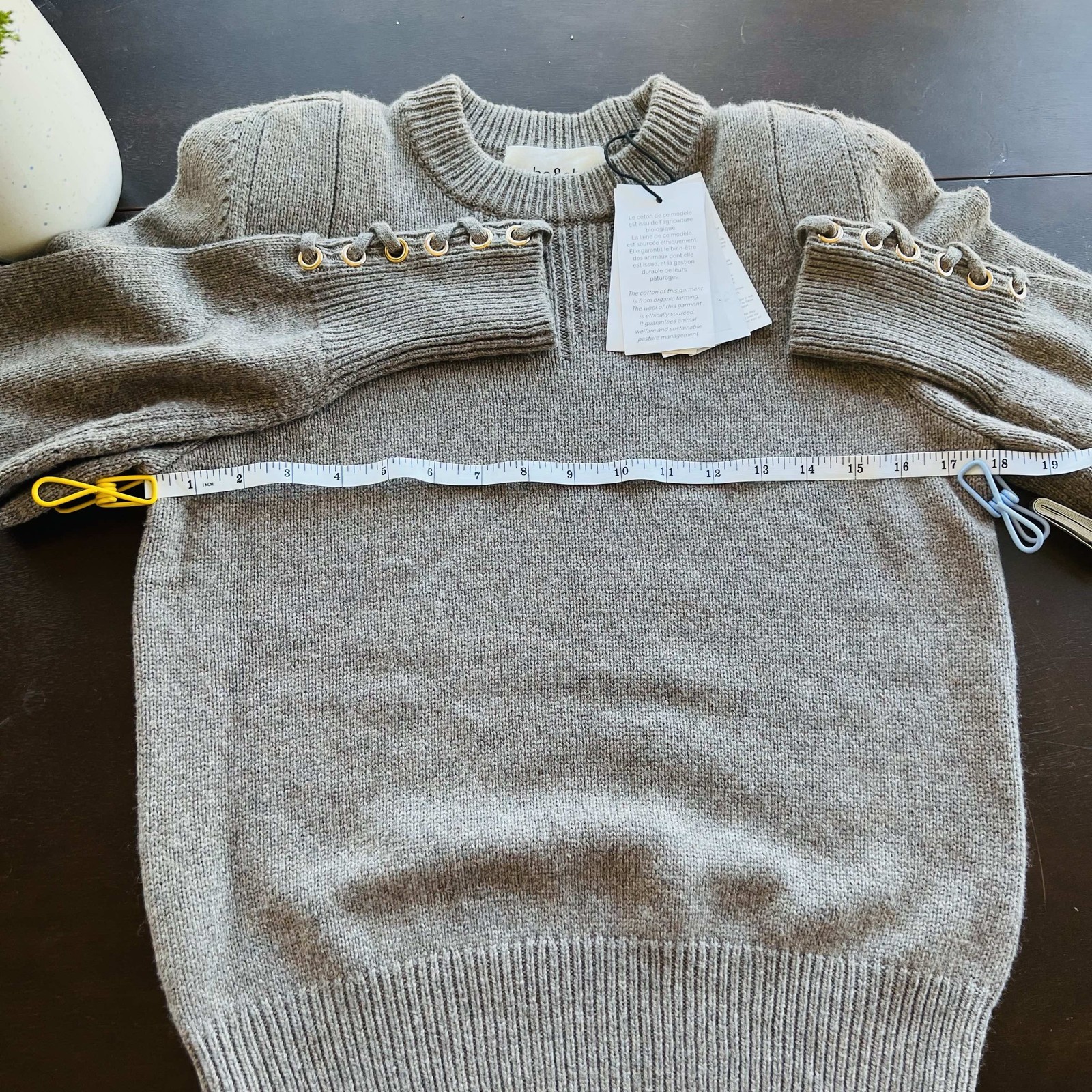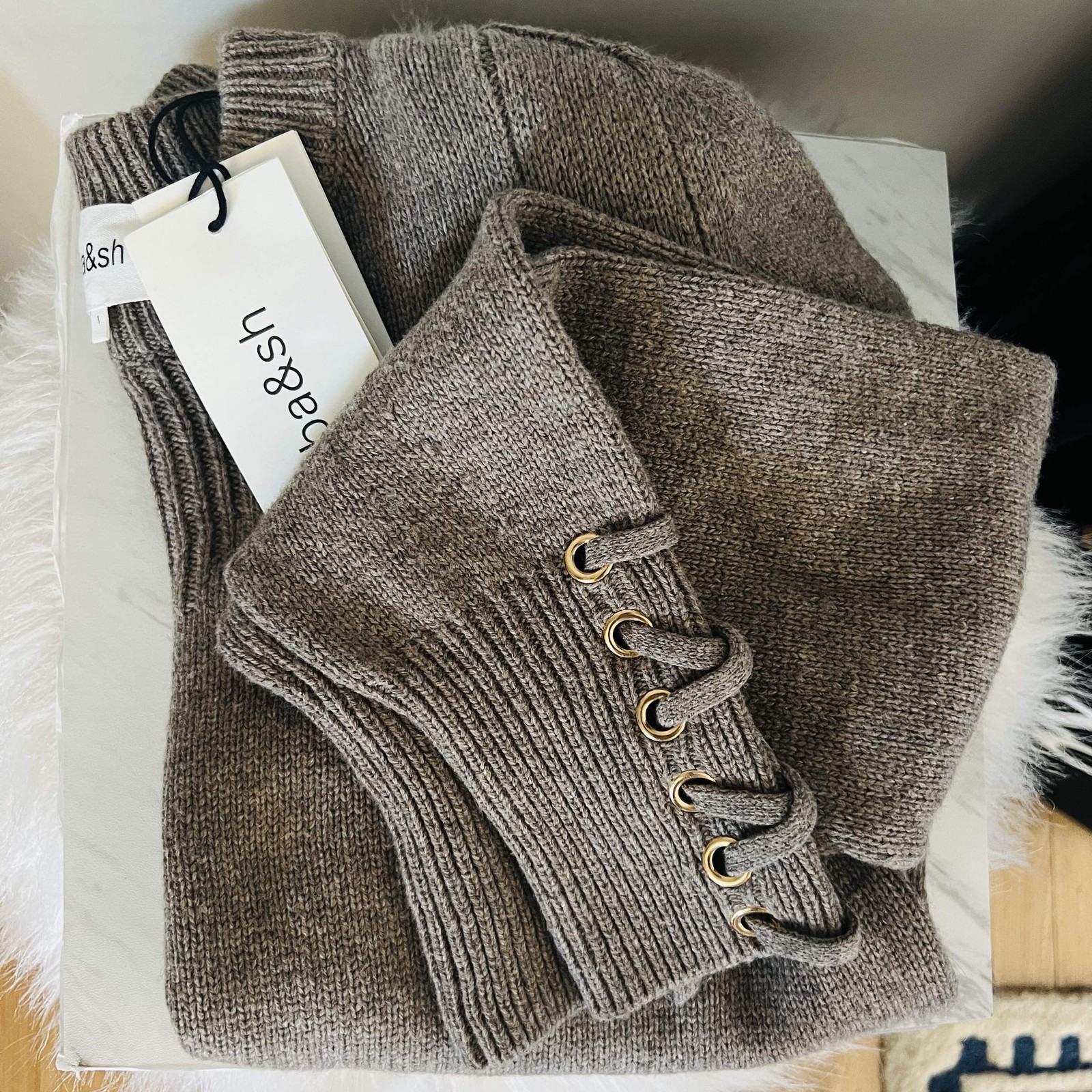 BA&SH Keane Lace-Up Cuff Wool & Cotton Sweater, Tan, Size Small, DESIGNER, NWT