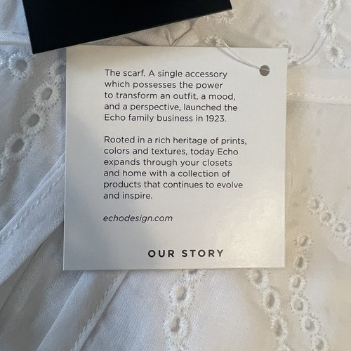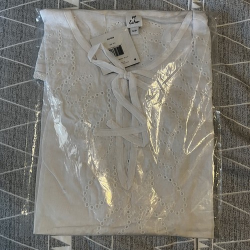ECHO Ocean Eyelet Tunic Dress, Beach Cover Up, White, Size Small, NWT