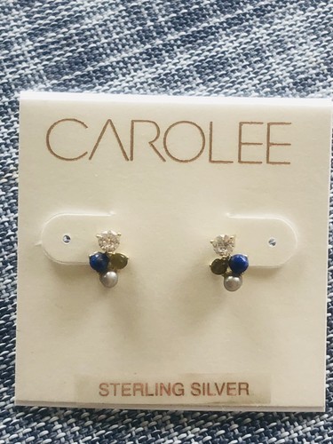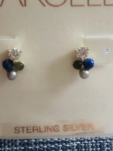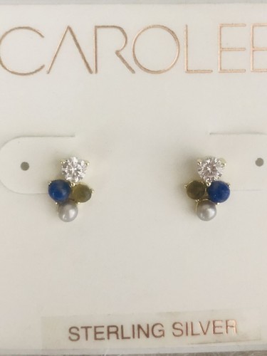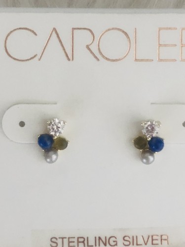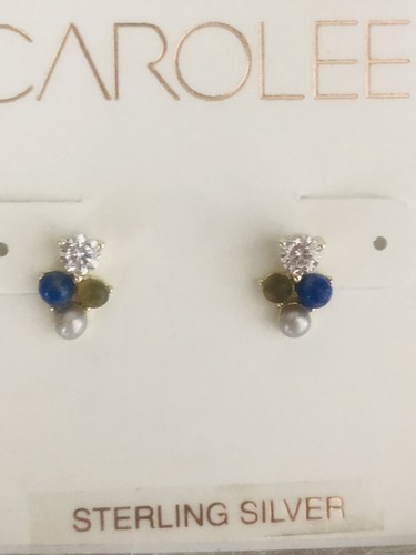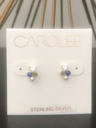 CAROLEE Stone & Freshwater Pearl Stud Earrings, Blue/Yellow/Gold, Pearl, NWT