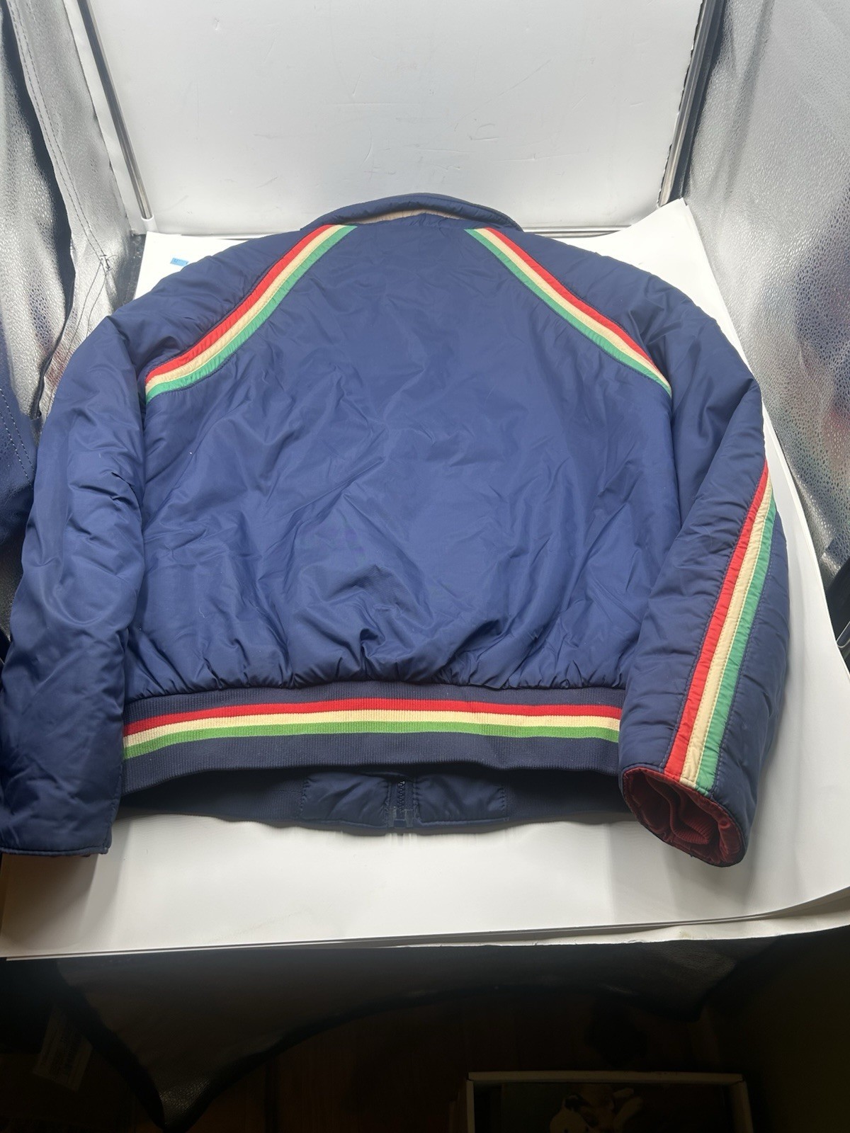 This Vintage White Stag Action Sports Full Zip Ski Parka Jacket Coat in size Large for men is a stylish and practical piece of outerwear from the 1970s. Made of durable nylon material, this original parka features a multi-color design in navy, perfect for a day on the slopes. With its retro charm and quality construction, this jacket is a must-have for any vintage fashion enthusiast or skiing enthusiast looking to add a unique and nostalgic touch to their wardrobe.