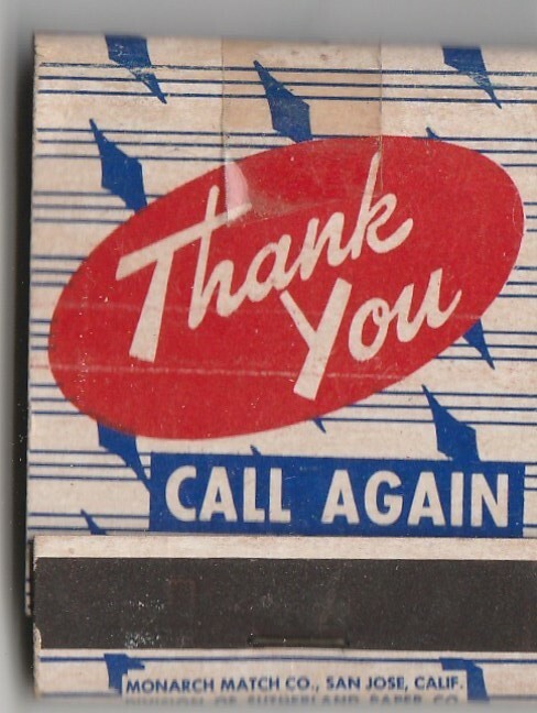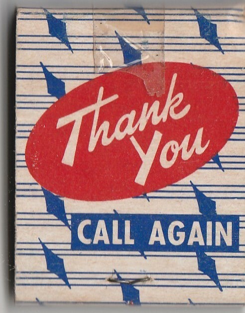 Vtg Strike on Matchbook ~ Thank You Call Again