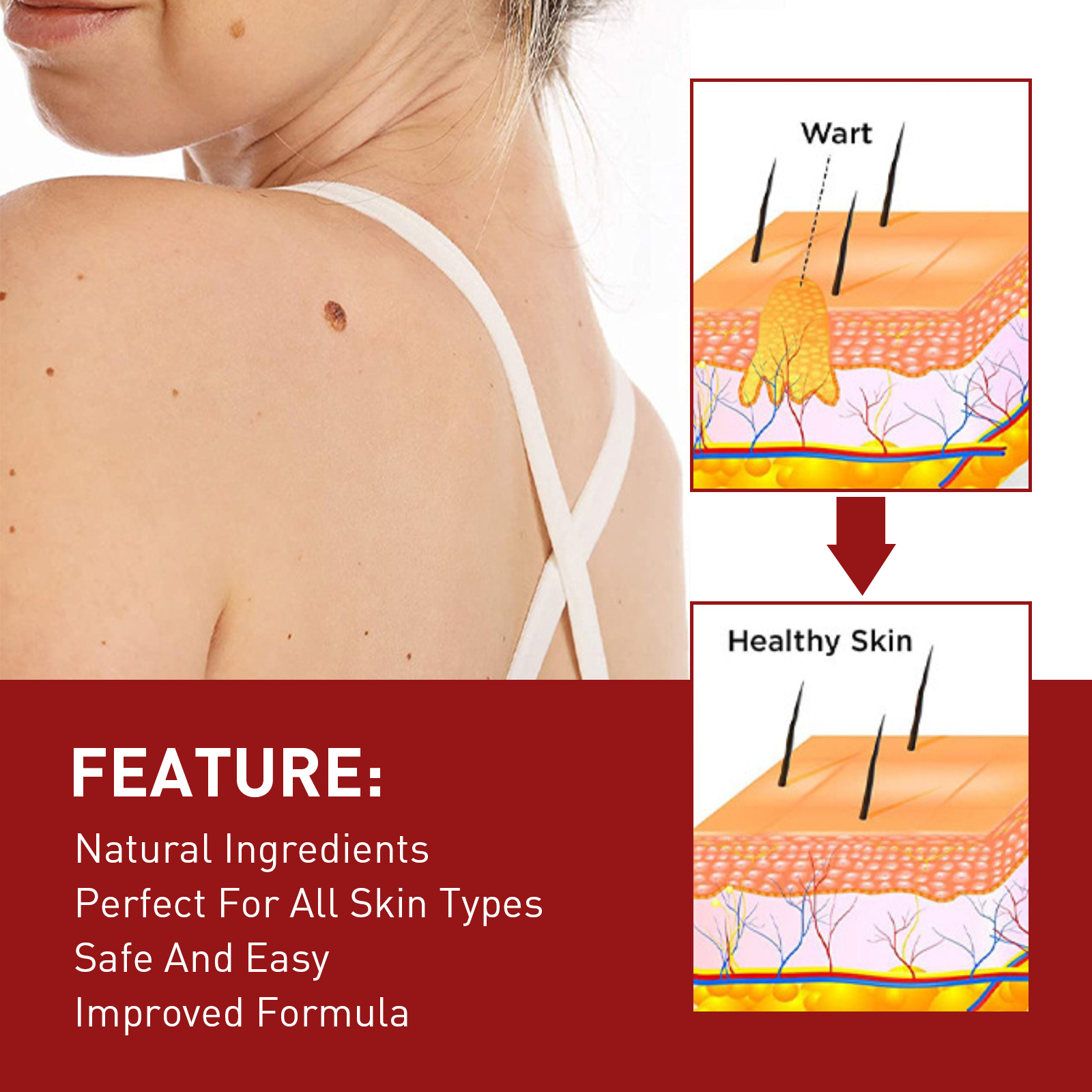 Our mole remover contains carbomer and rose leaf extract. It can cut deep into the skin to soften growths and remove growths. Its use method is very simple: wash your hands and face first, squeeze out an appropriate amount of the liquid on the palm or face, smear it evenly on the place you want to apply, and wait until the skin is completely absorbed. The natural ingredients are perfectly safe for all skin types, removing growths, cutting and regenerating, and growing new muscles by repair.