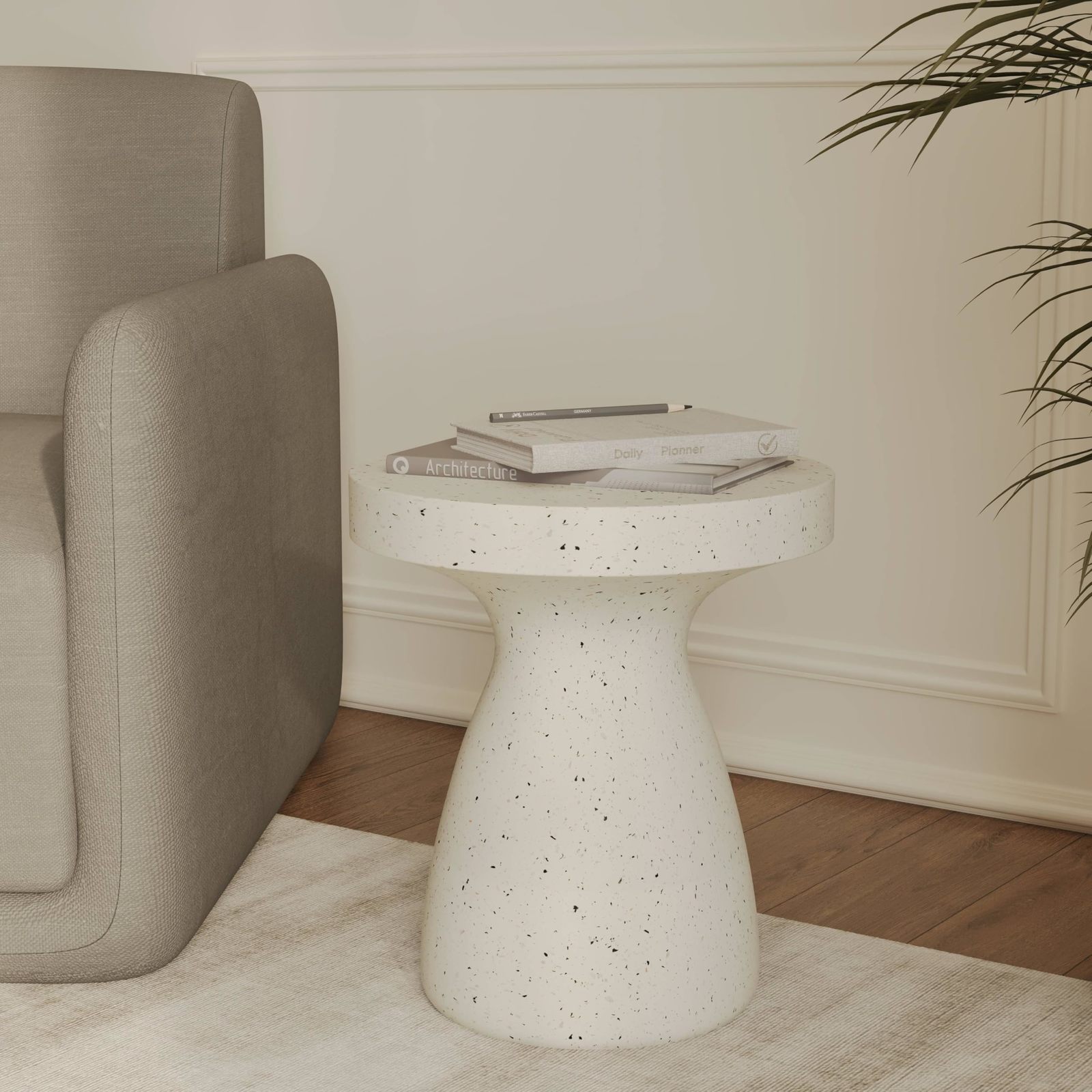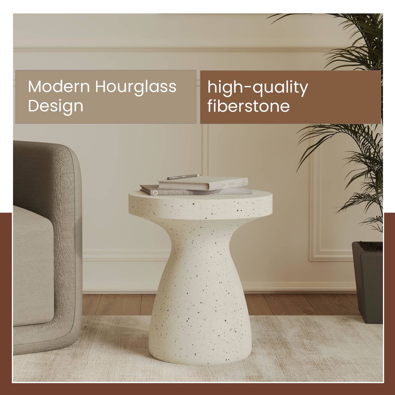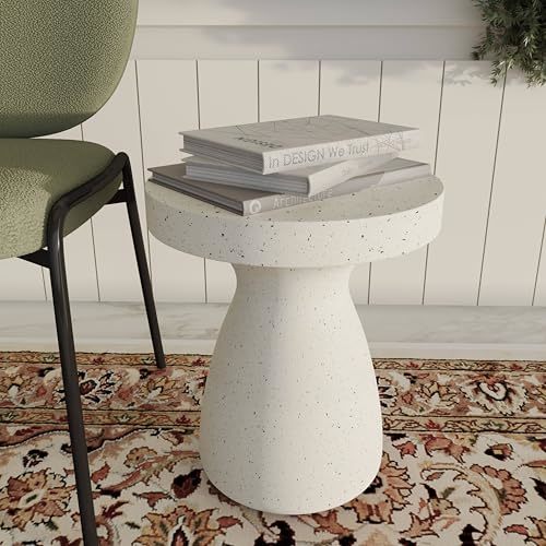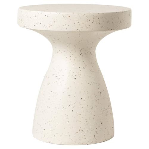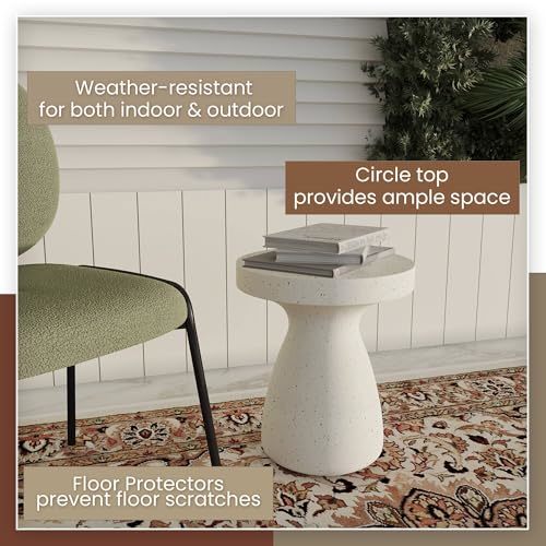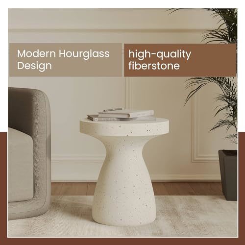 LeisureMod 16 Wide Round Side Table in Fiberstone with Hourglass Pedestal Desig