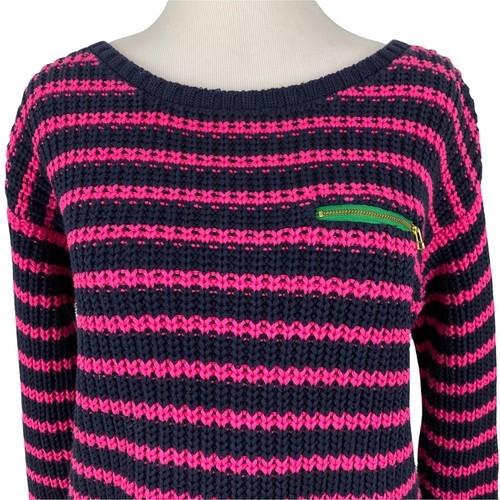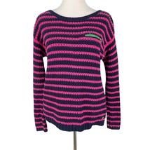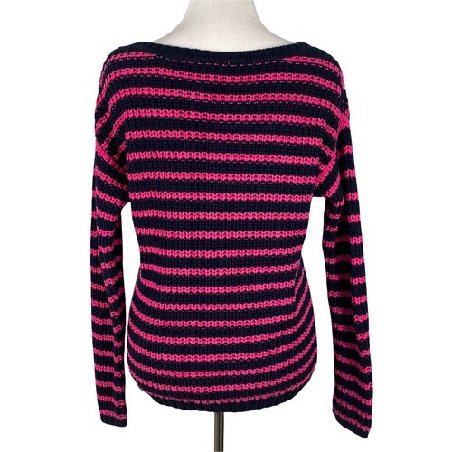 Tommy Hilfiger Sweater Womens Navy Blue Pink Striped Long Sleeve Knit Pullover
