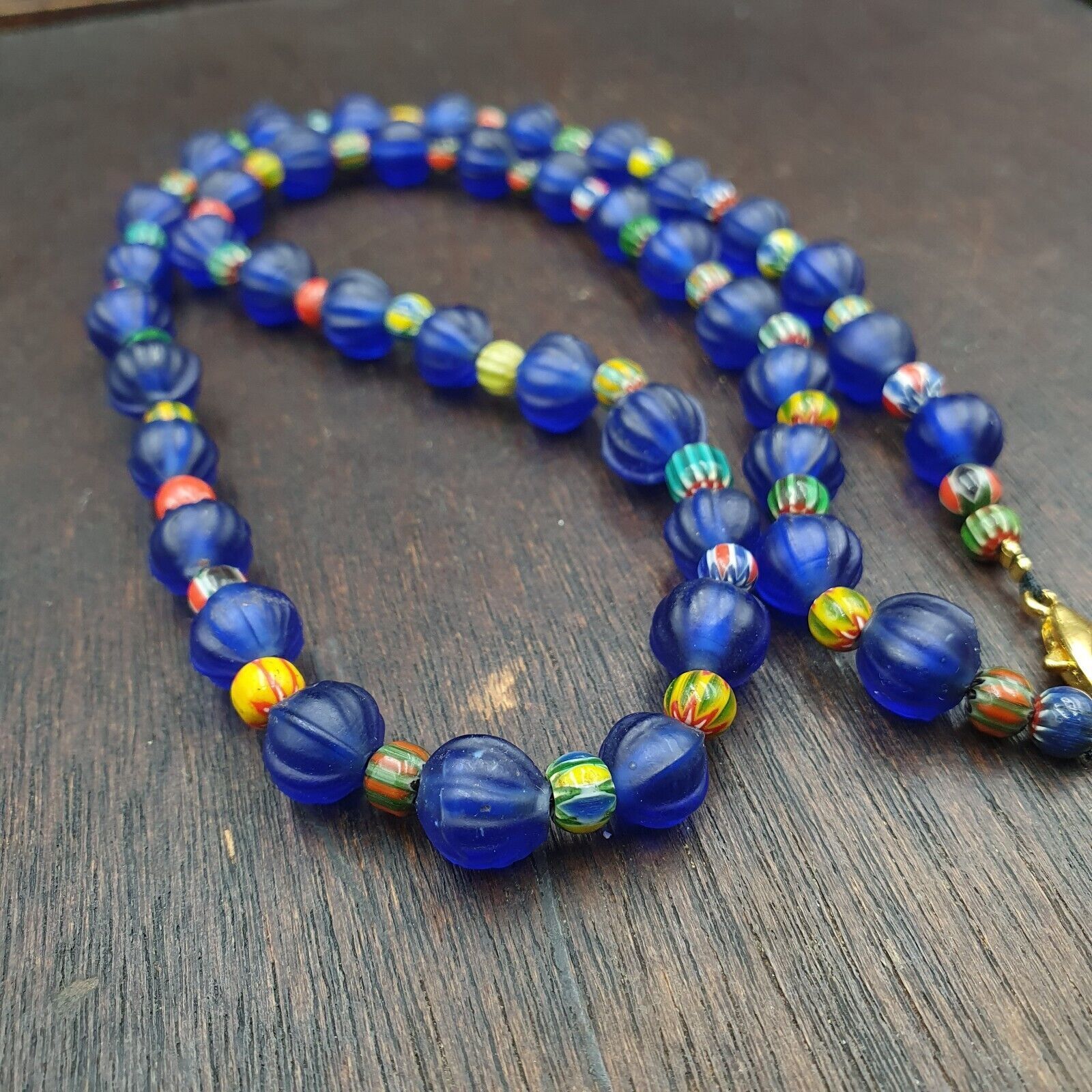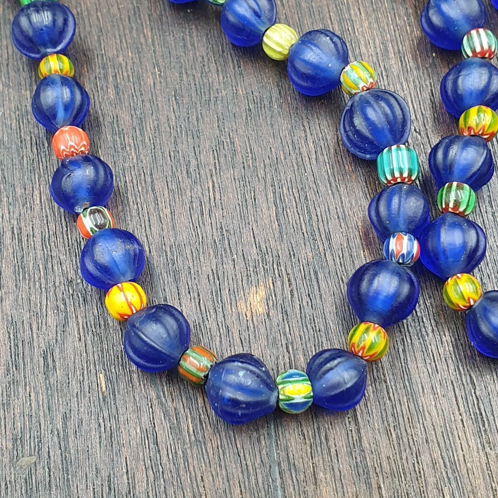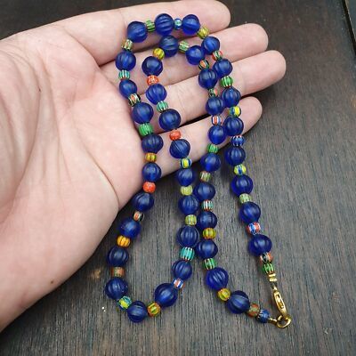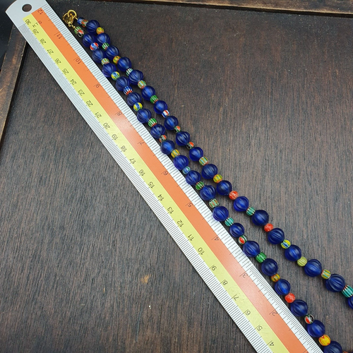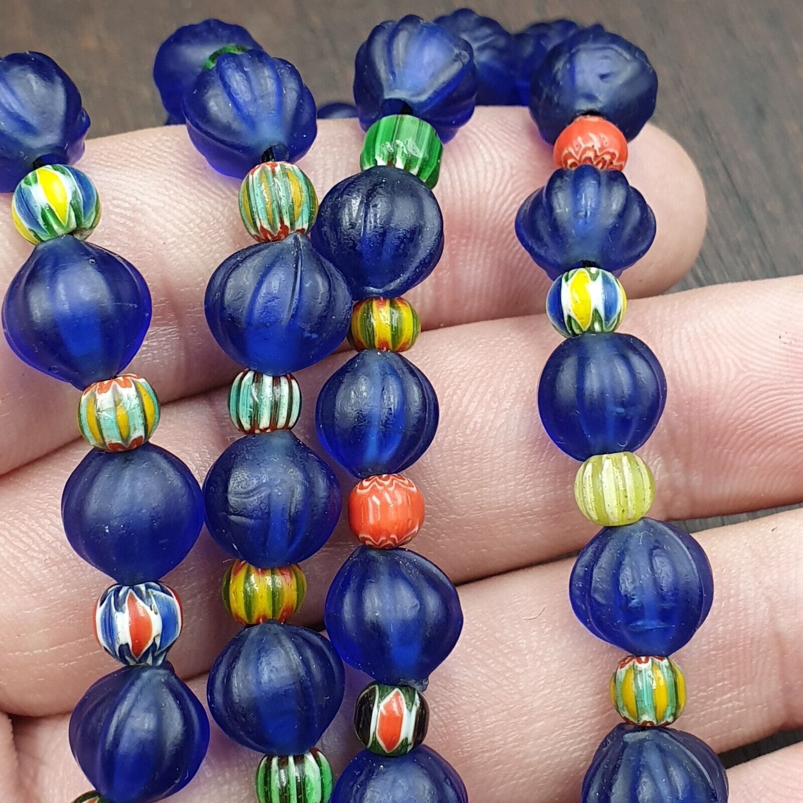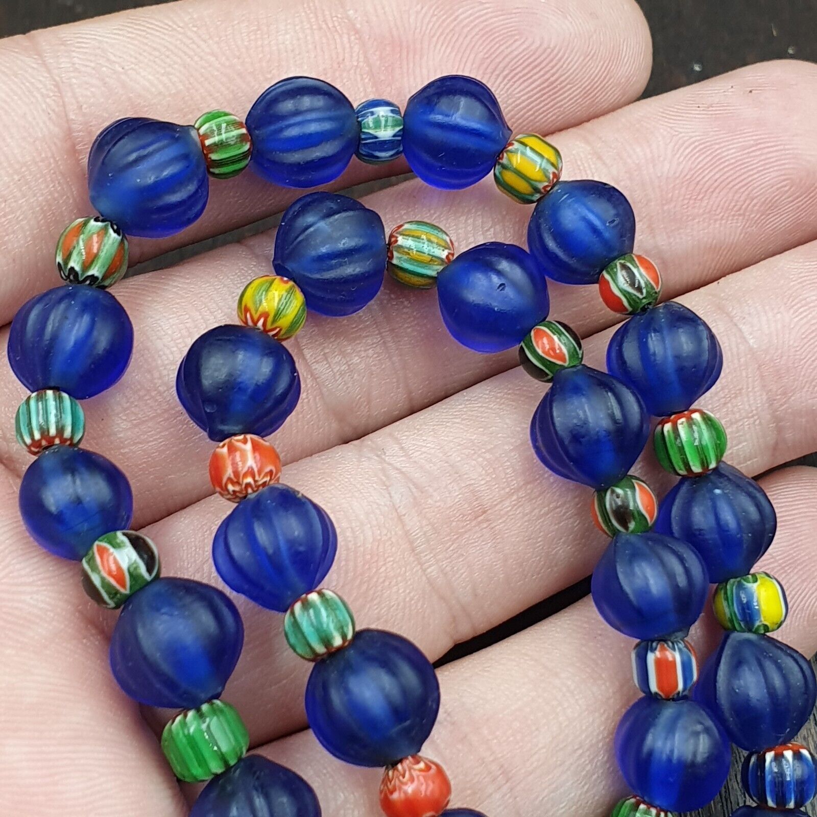 BEAUTIFUL OLD 5mm Chevron & 9 mm cobalt Blue GLASS Vintage BEADS Strand
