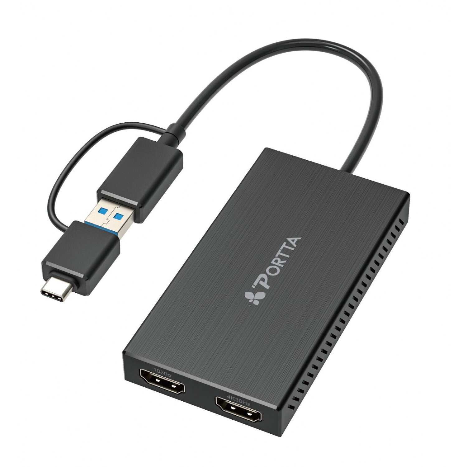 PORTTA 107B-USB-HDMI-B USB TO DUAL HDMI ADAPTER, USB A/C TO 2X HDMI DISPLAYS (1X
