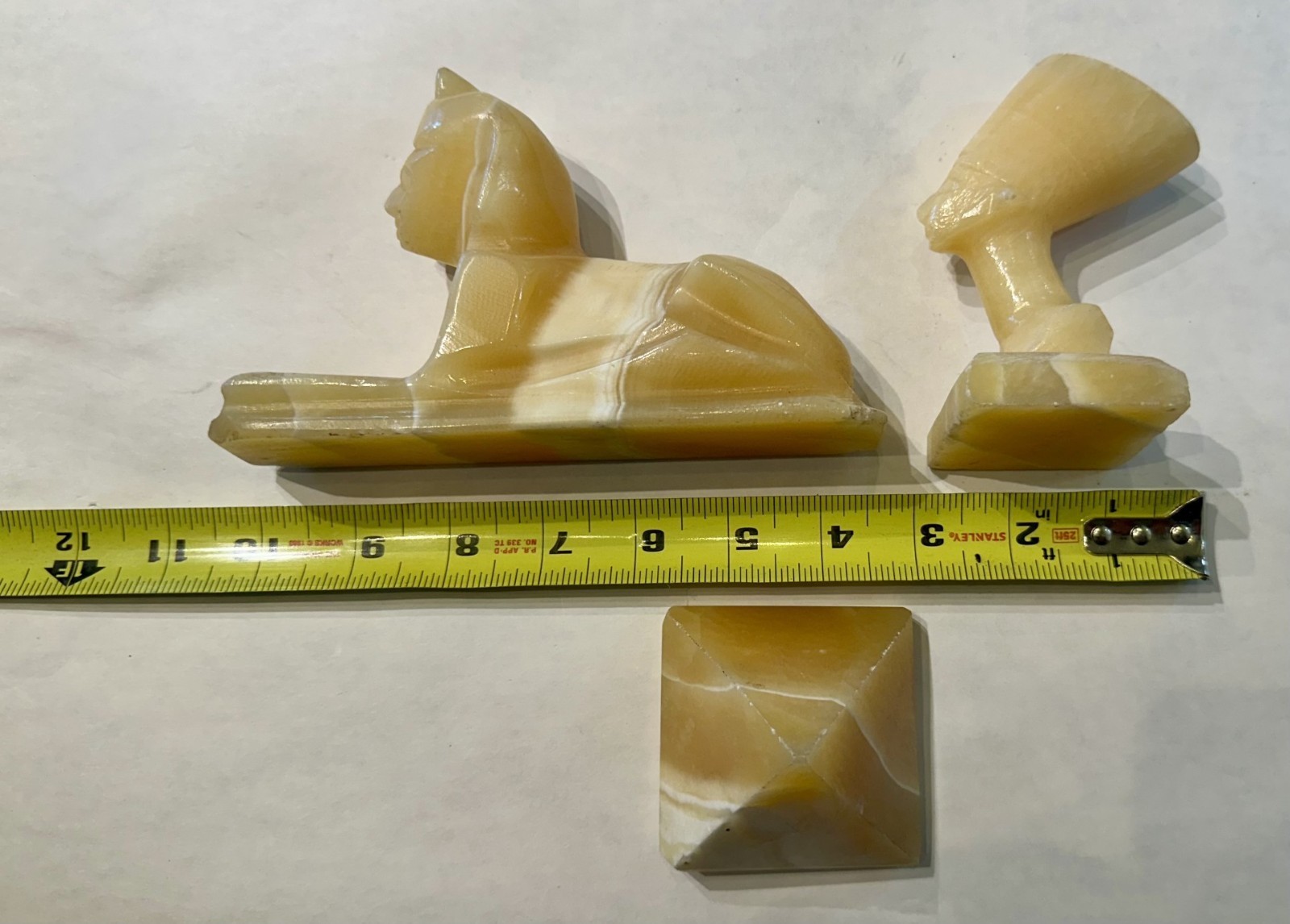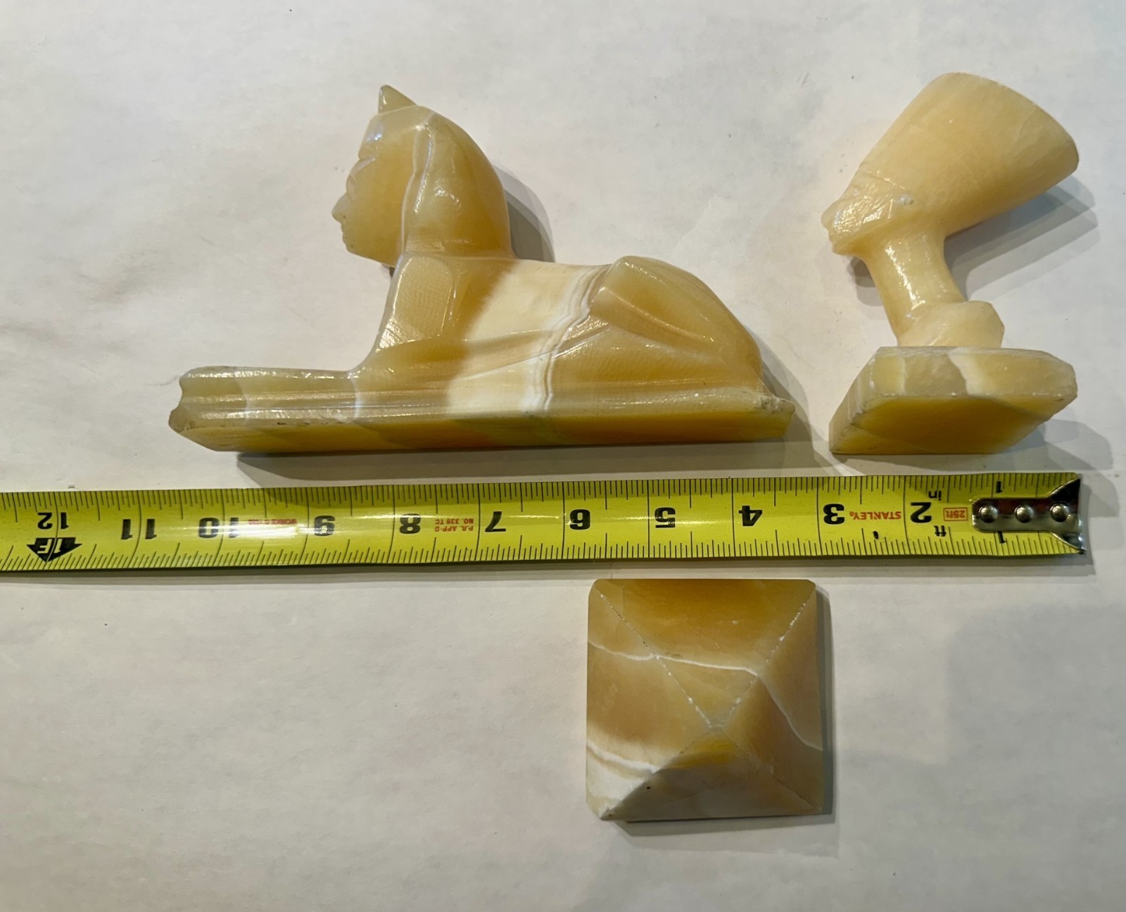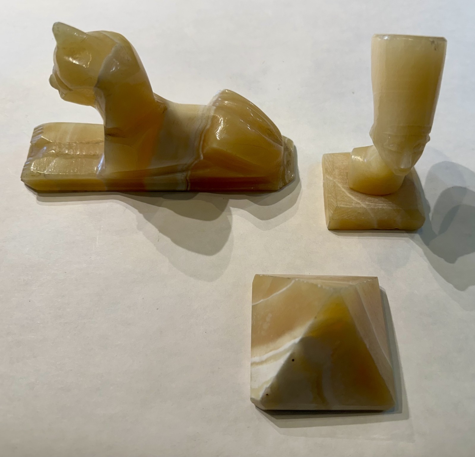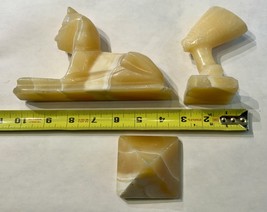 Egyptian Honey Calcite Alabaster Set – Sphinx, Nefertiti & Pyramid Trio Vintage