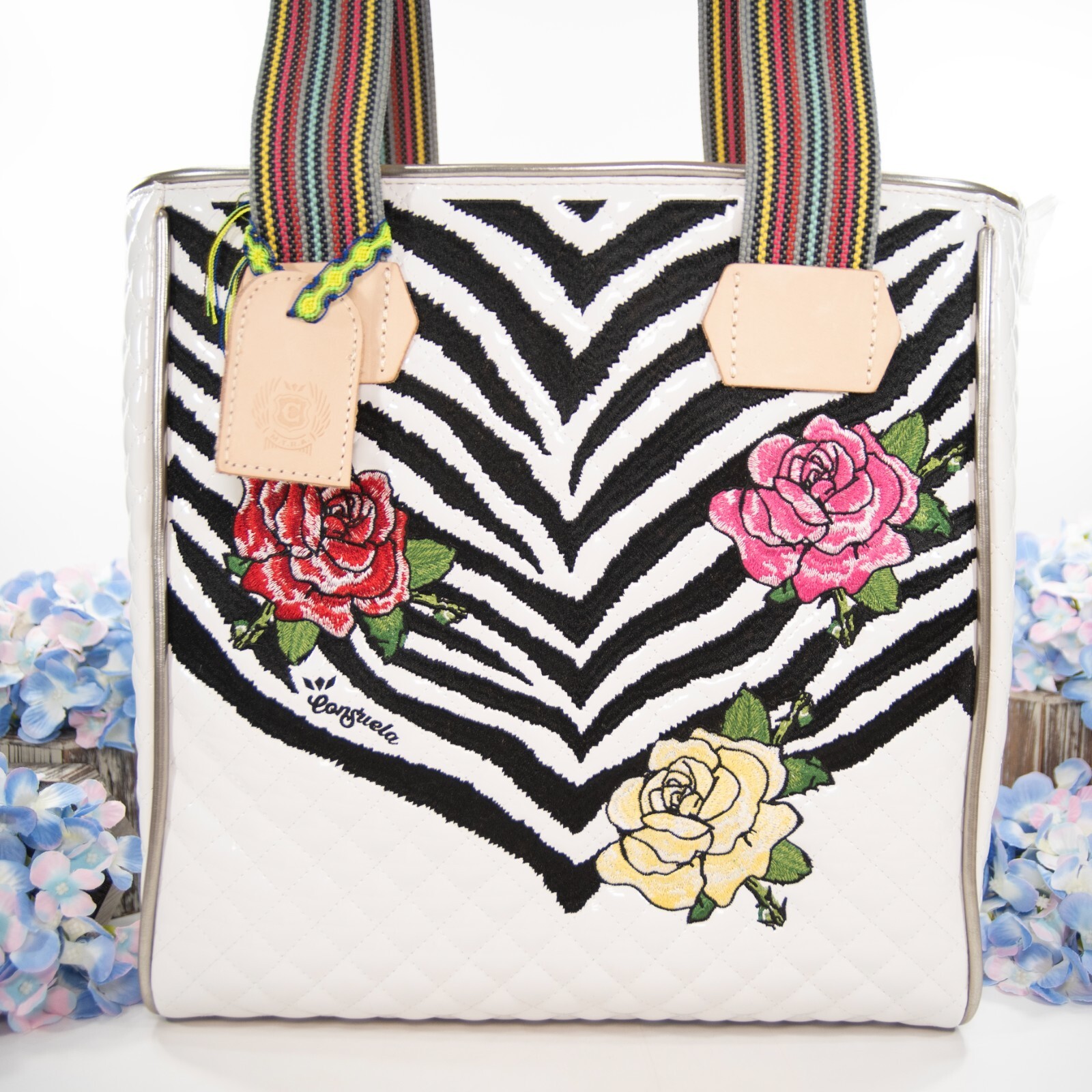 Consuela Michelle Patent and Natural Leather Embroidered Classic Tote Bag NWT
