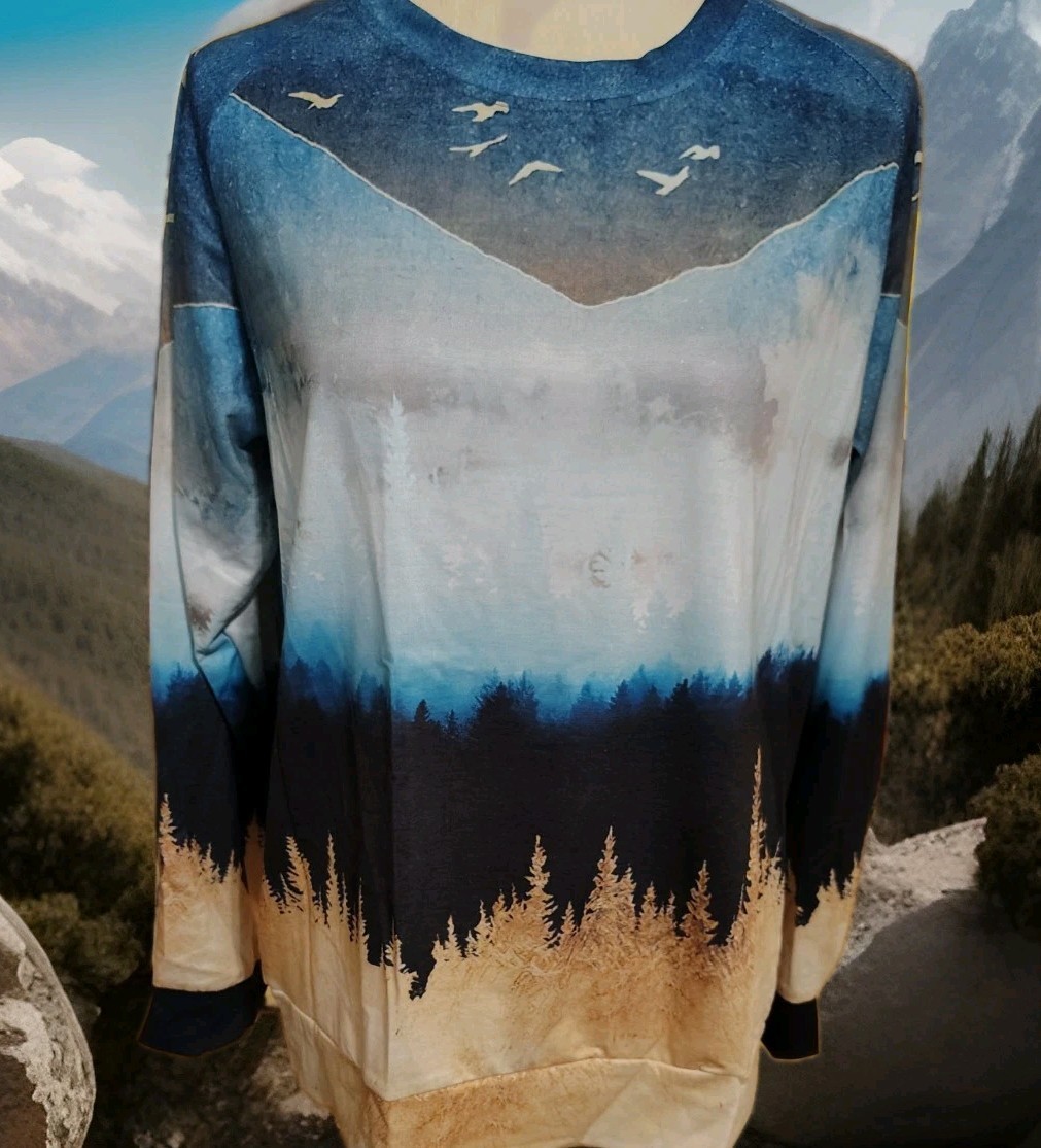 Knoeasy Women's Casual Loose Fit Long Sleeve Top Birds Landscape Large