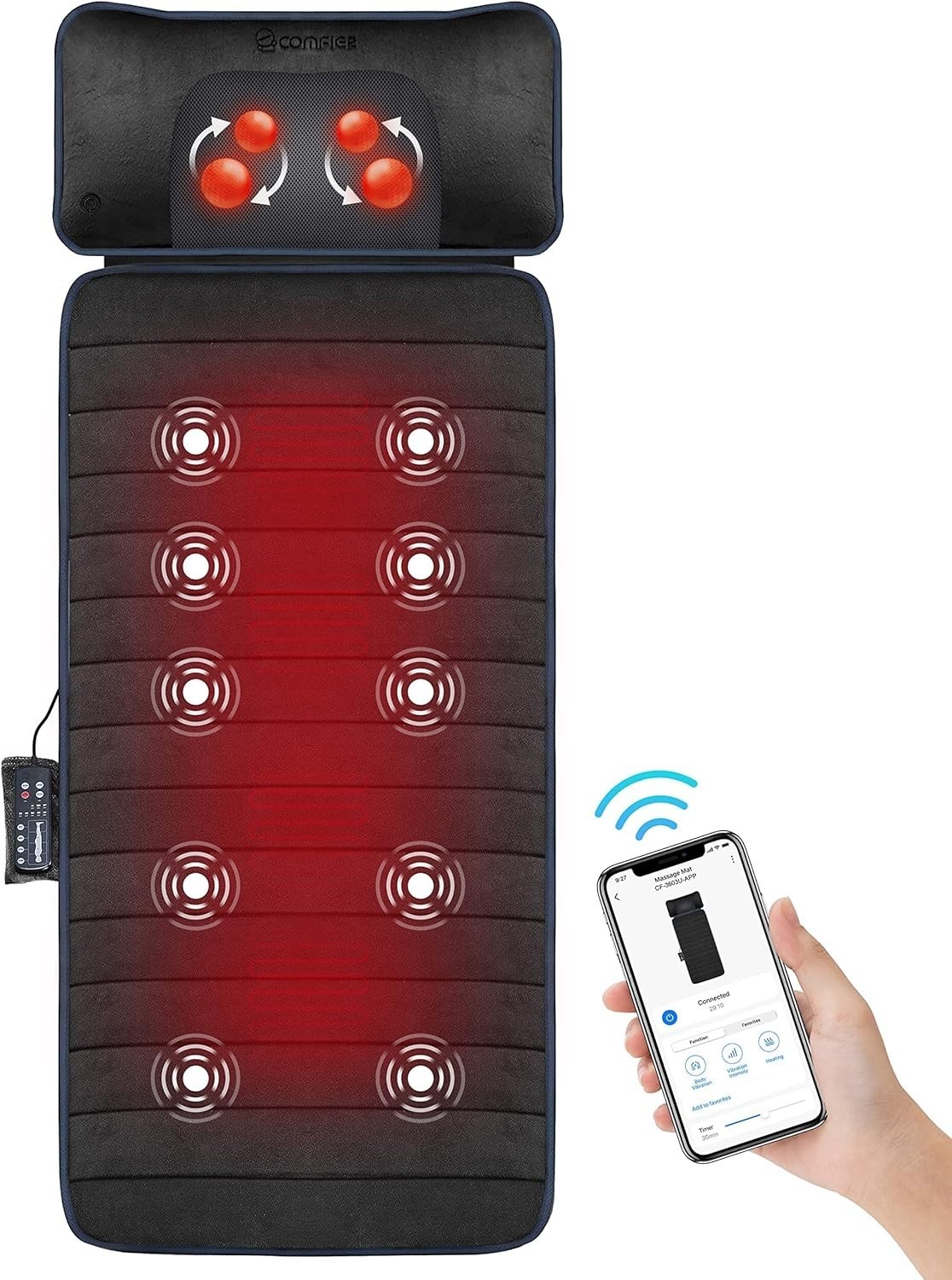 COMFIER Full Body Massage Mat with Neck Pillow, Vibrating Motors Heating Pads for Back Pain