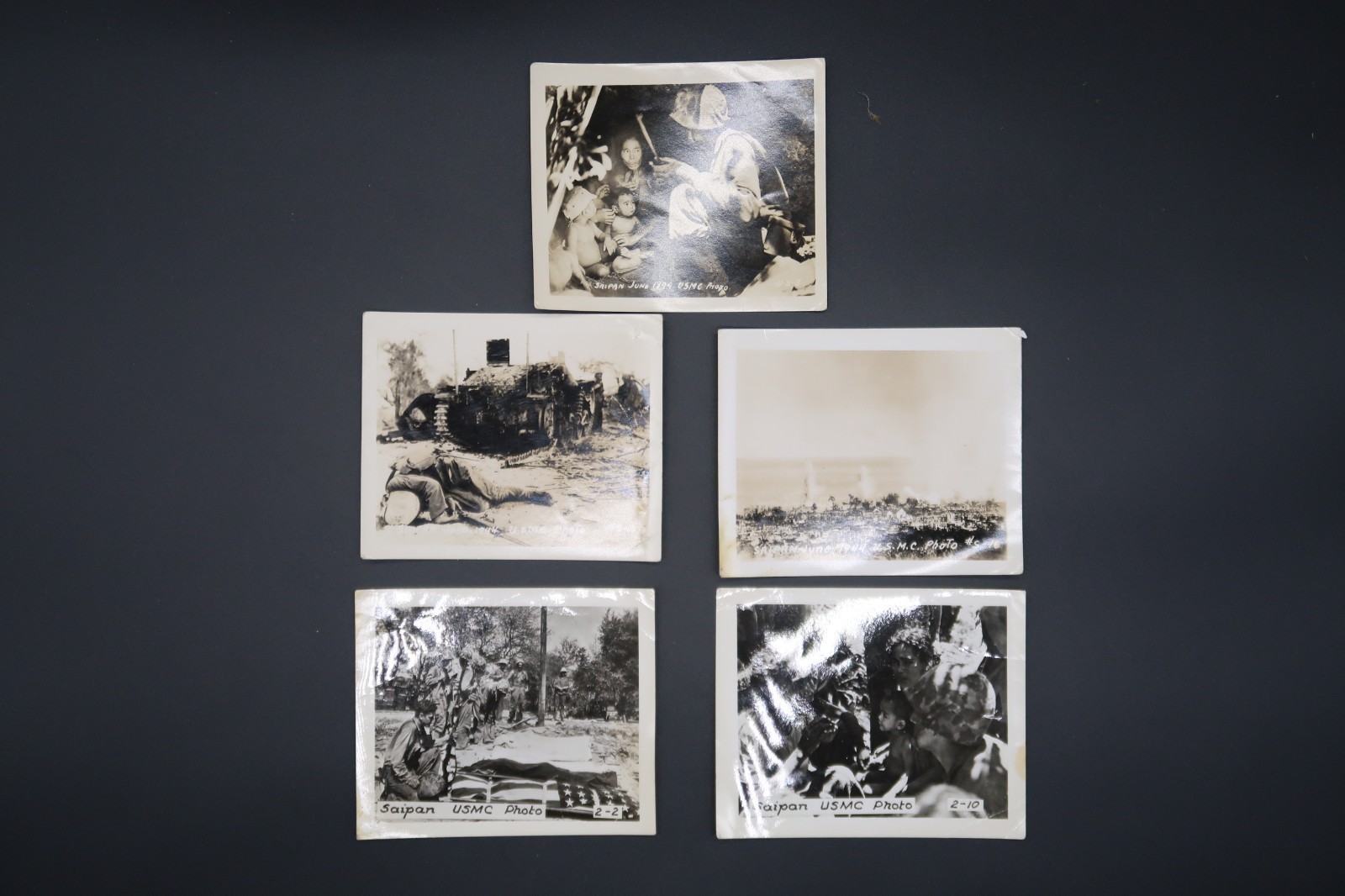 Vtg WW2 Saipan Marine Corp Photo Lot of 5 War Photographs