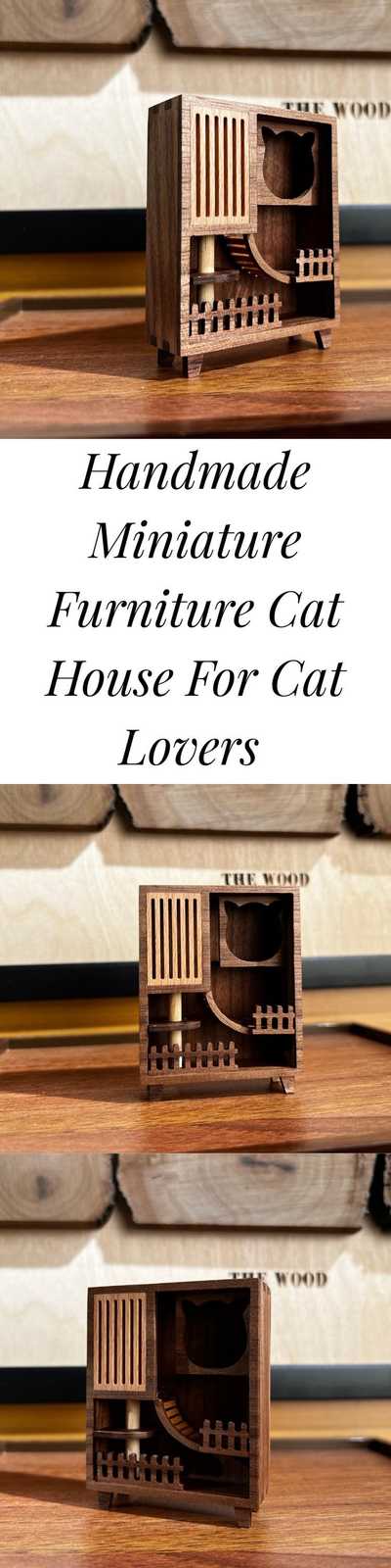 Miniature Furniture Cat House Dollhouse Cat Inspired Handmade Art Gift For Cat L