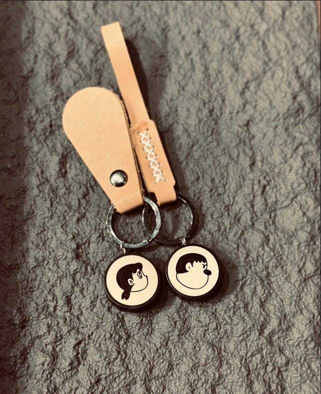 This Nobita charm handmade wooden Shizuka home decor piece is perfect for fans of classic anime and nostalgic collectibles. A cute couple mini charm bag accessory, this anime duo charm for collectors makes a thoughtful gift for Doraemon fan or anyone who loves heartfelt character art.