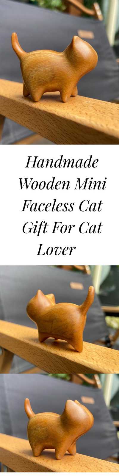 Mini Faceless Cat Handmade Wooden Abstract Figurine Gift For Cat Lover Artisana