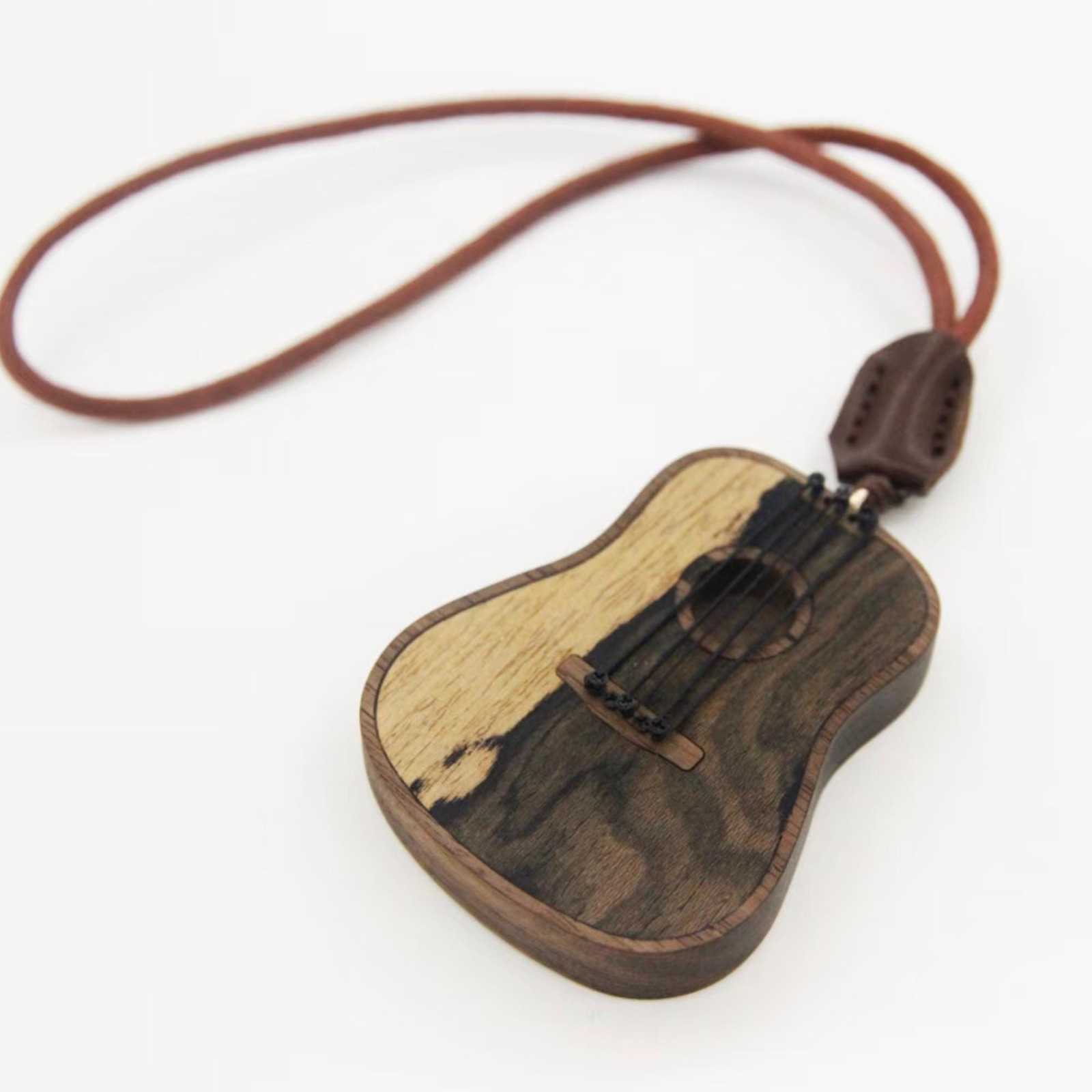 This brown miniature wooden guitar display piece is a charming decorative accent for home, office, or car, perfect for adding a touch of musical flair to your space. Handcrafted with care, this decorative guitar car charm makes a unique small guitar souvenir gift idea for guitar enthusiasts, musicians, and collectors alike.