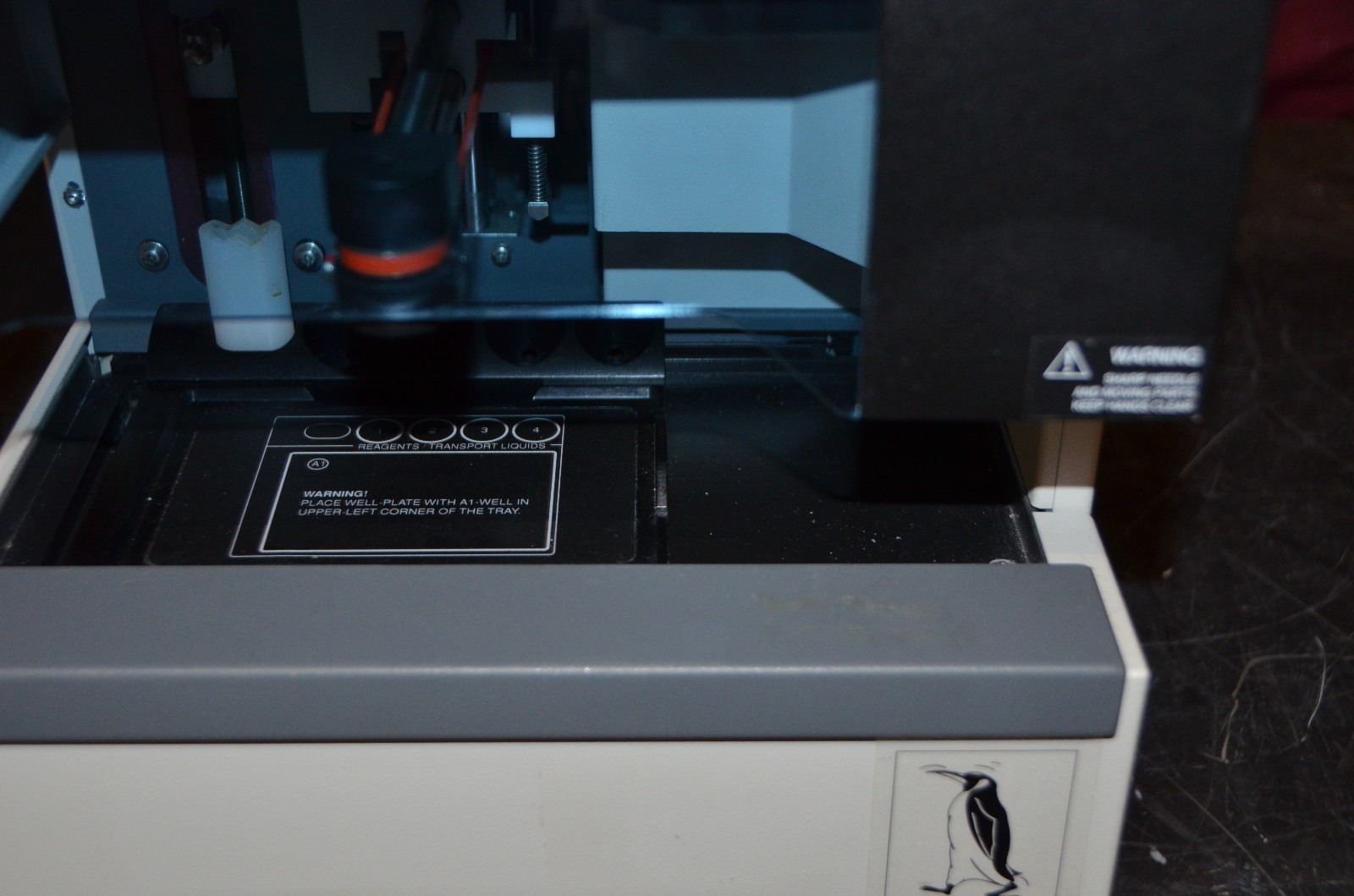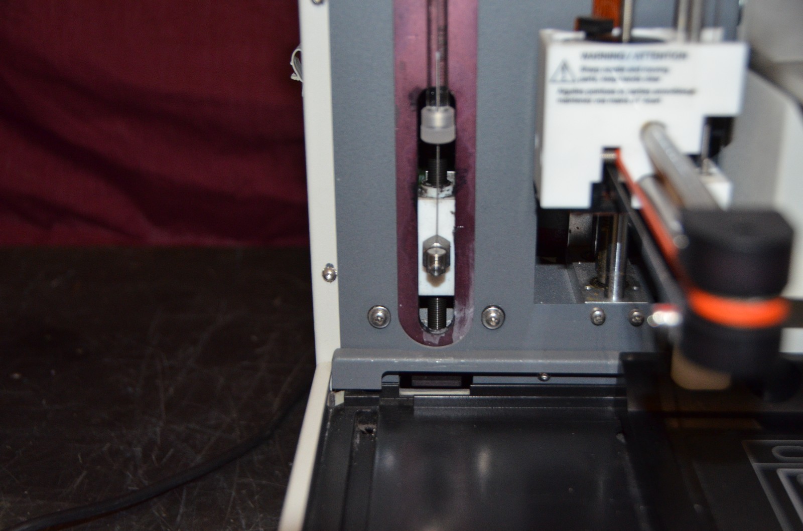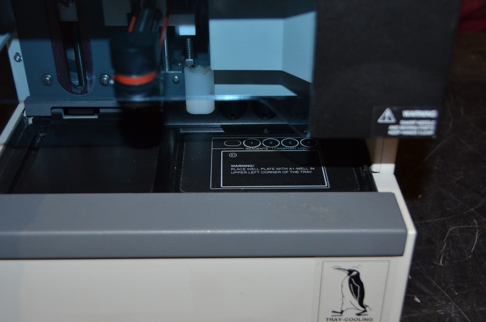 PLEASE NOTE: As seen in photos the 250 mL wash solvent bottle is not present with this machine but can be easily replaced.