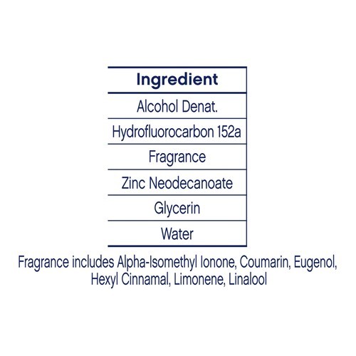 Alcohol Denat. Hydrofluorocarbon 152a, Fragrance (Parfunm).. |