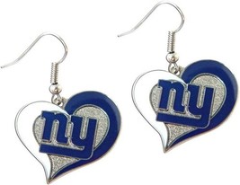 New* New York Giants NFL Silver Swirl Heart Dangle Earrings Non-Allergenic GMEN