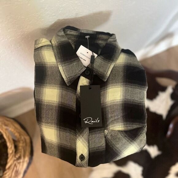 Rails Hunter Plaid Button Up Shirt, Long Sleeve, 90's Black/White, Small, NWT