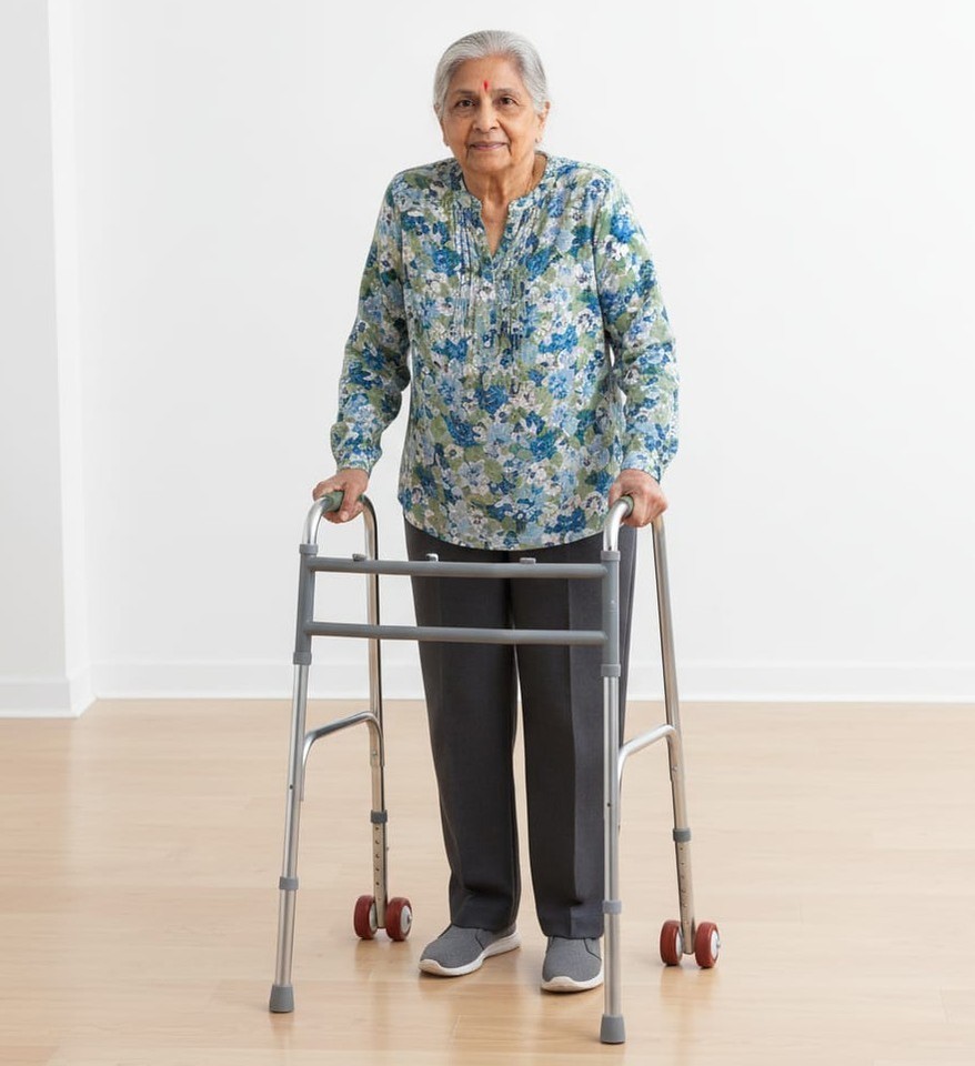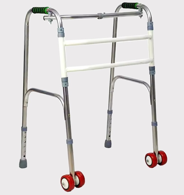 Wheeled Base: Equipped with wheels, this walker provides enhanced mobility and stability while reducing strain on the user.