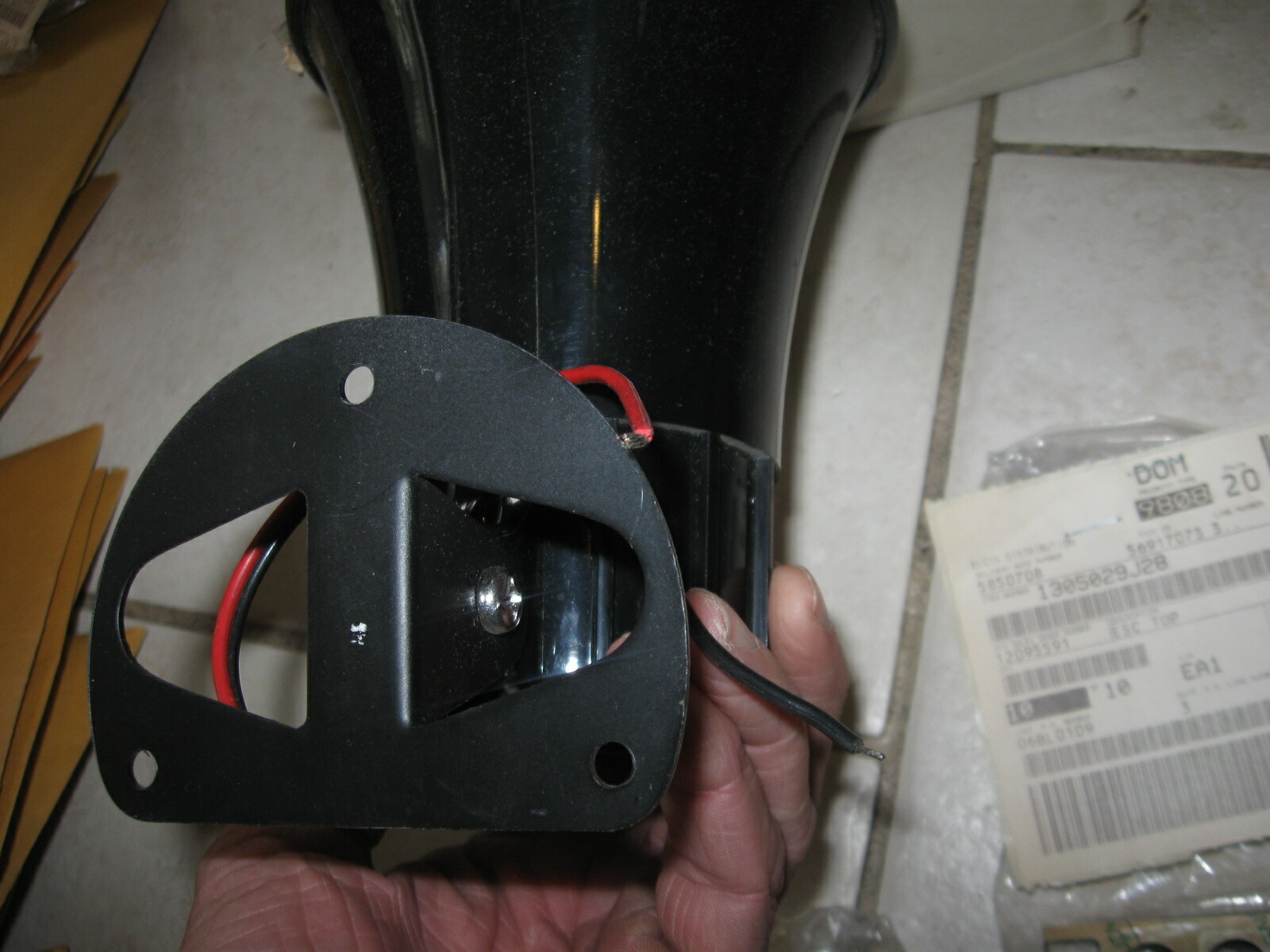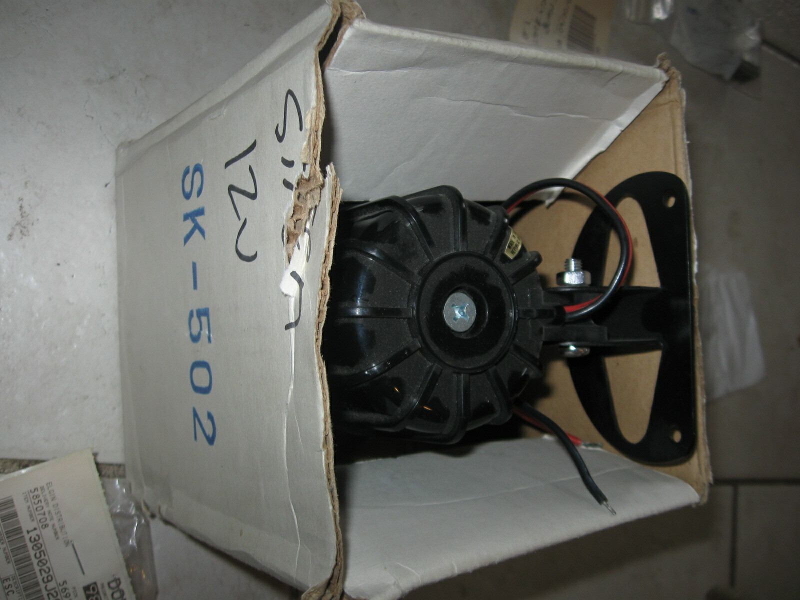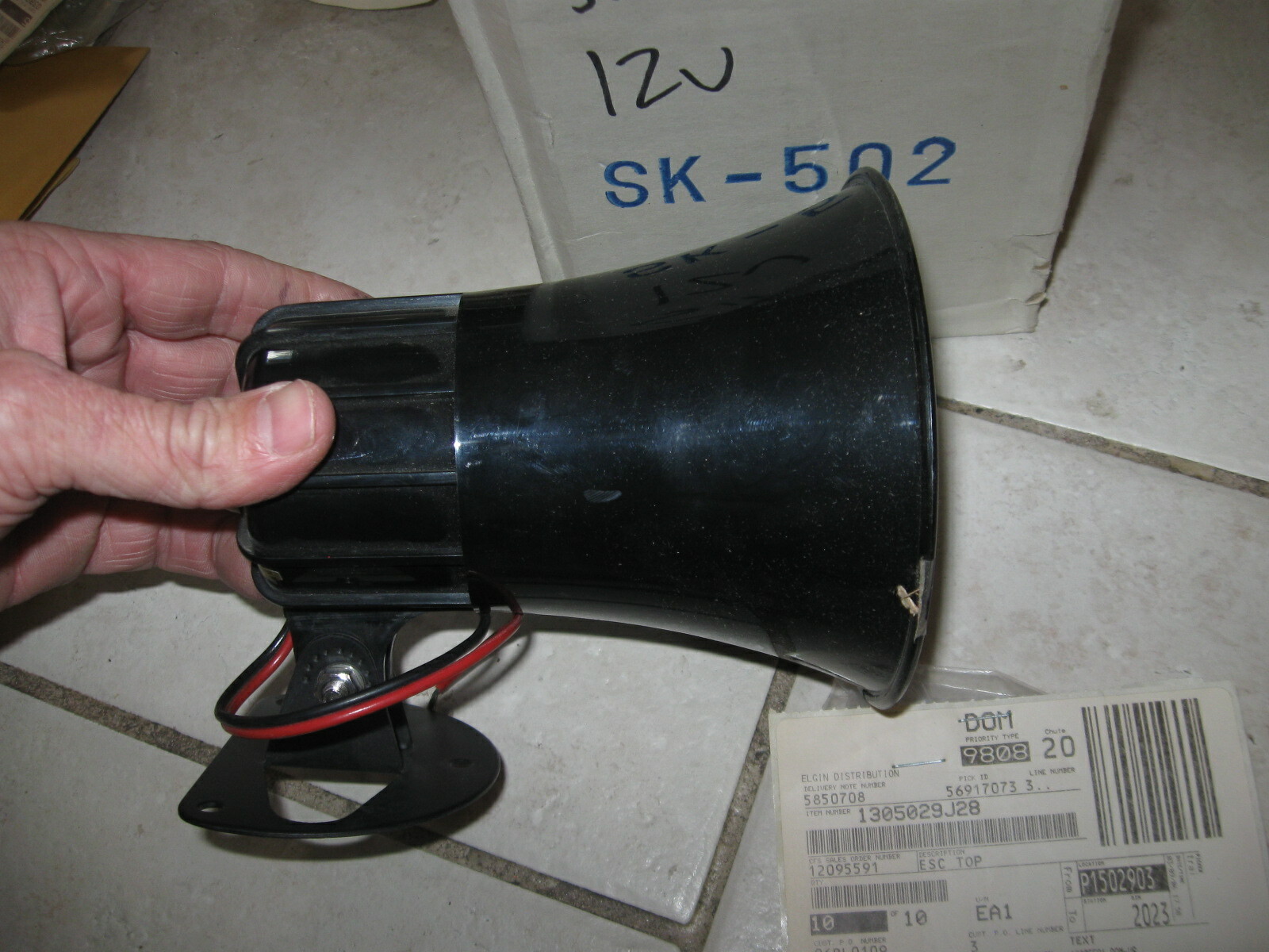 NEW Sho-Me Able2 Speaker Alarm Siren Horn 12V 5" horn diameter x 6" long x 4.5 inches high # SK-502 (?) This is great stuff. you get the whole set up here. Not sure of the brand, but this is new and was with a bunch of other Sho-Me parts. Comes with Mount and wiring FREE USA SHIP