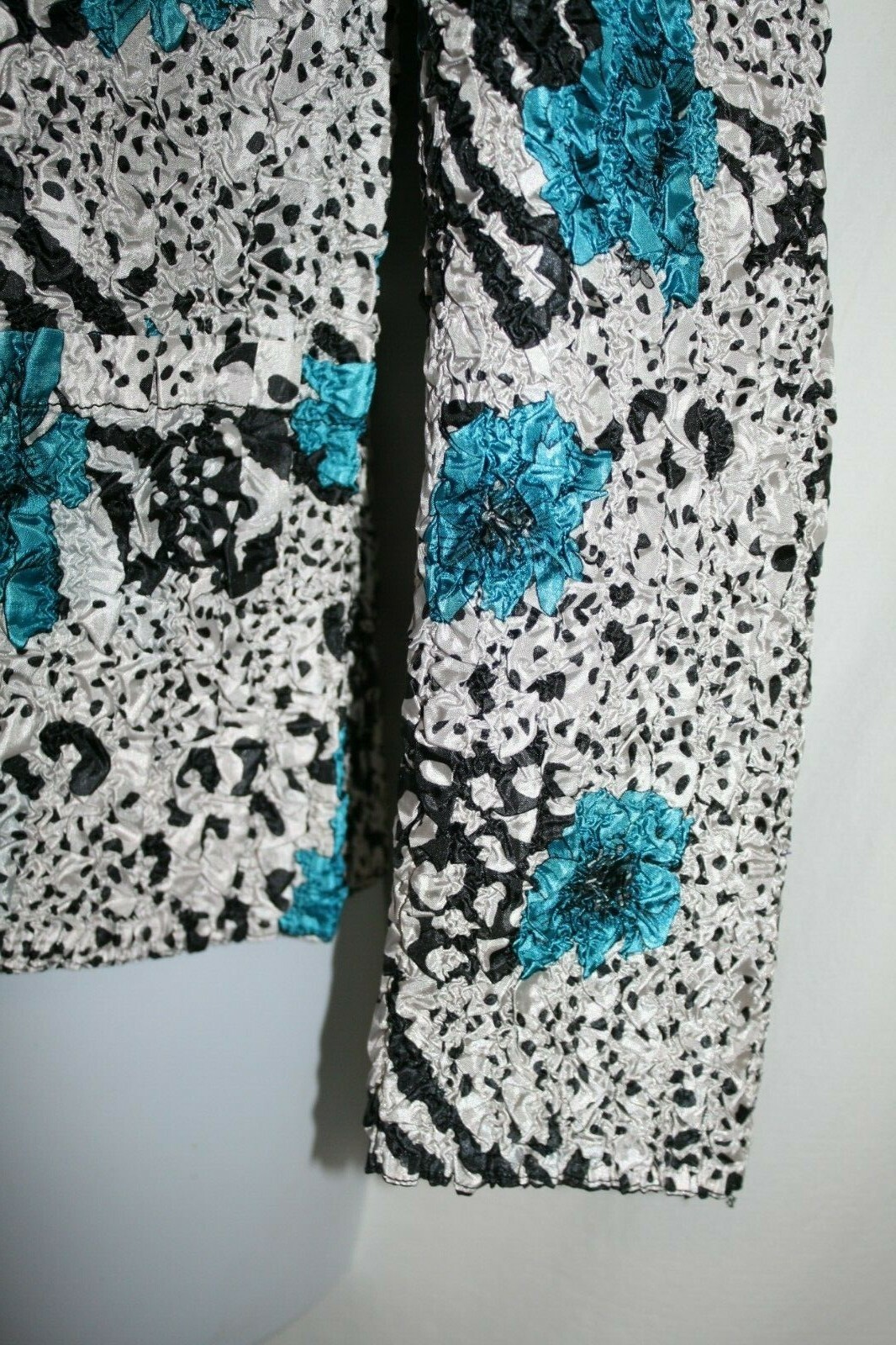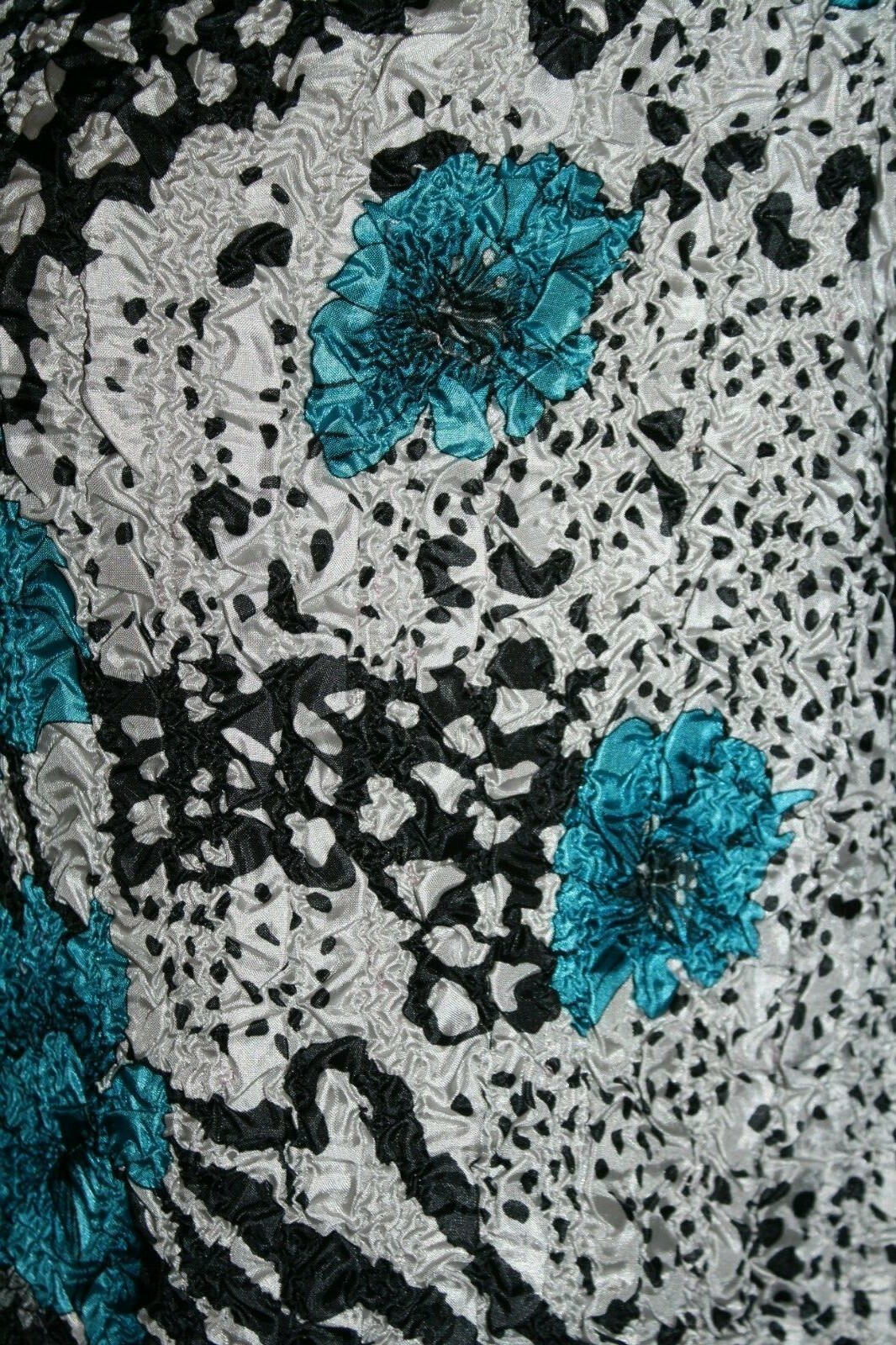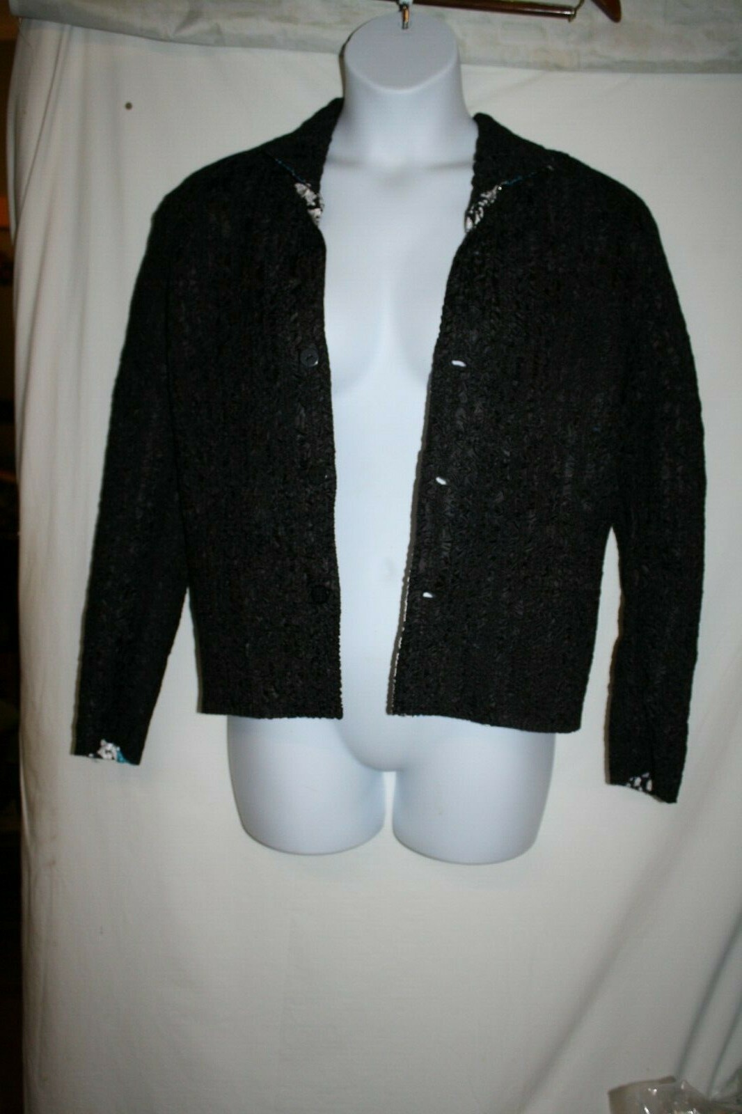 Napa Valley Misses SMALL Blouse Turquoise Aqua Black Reversible Puckered Stretch