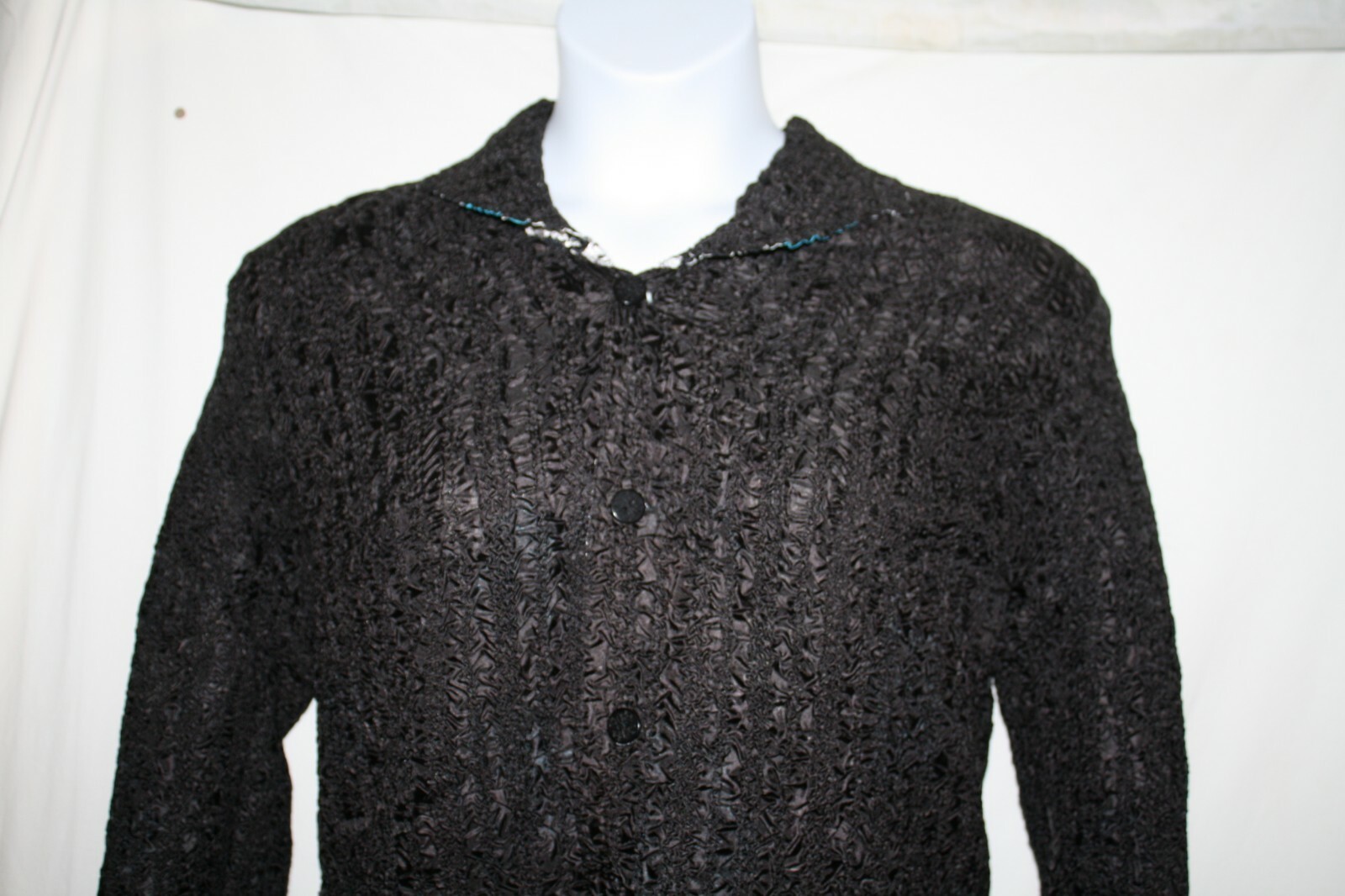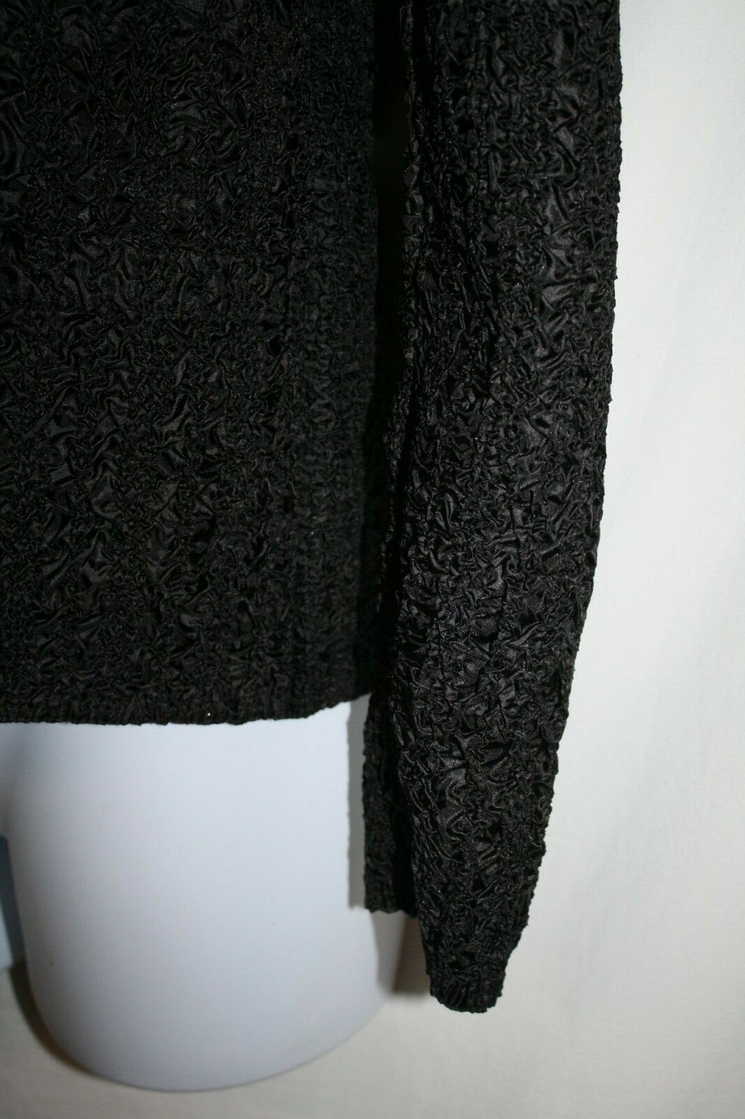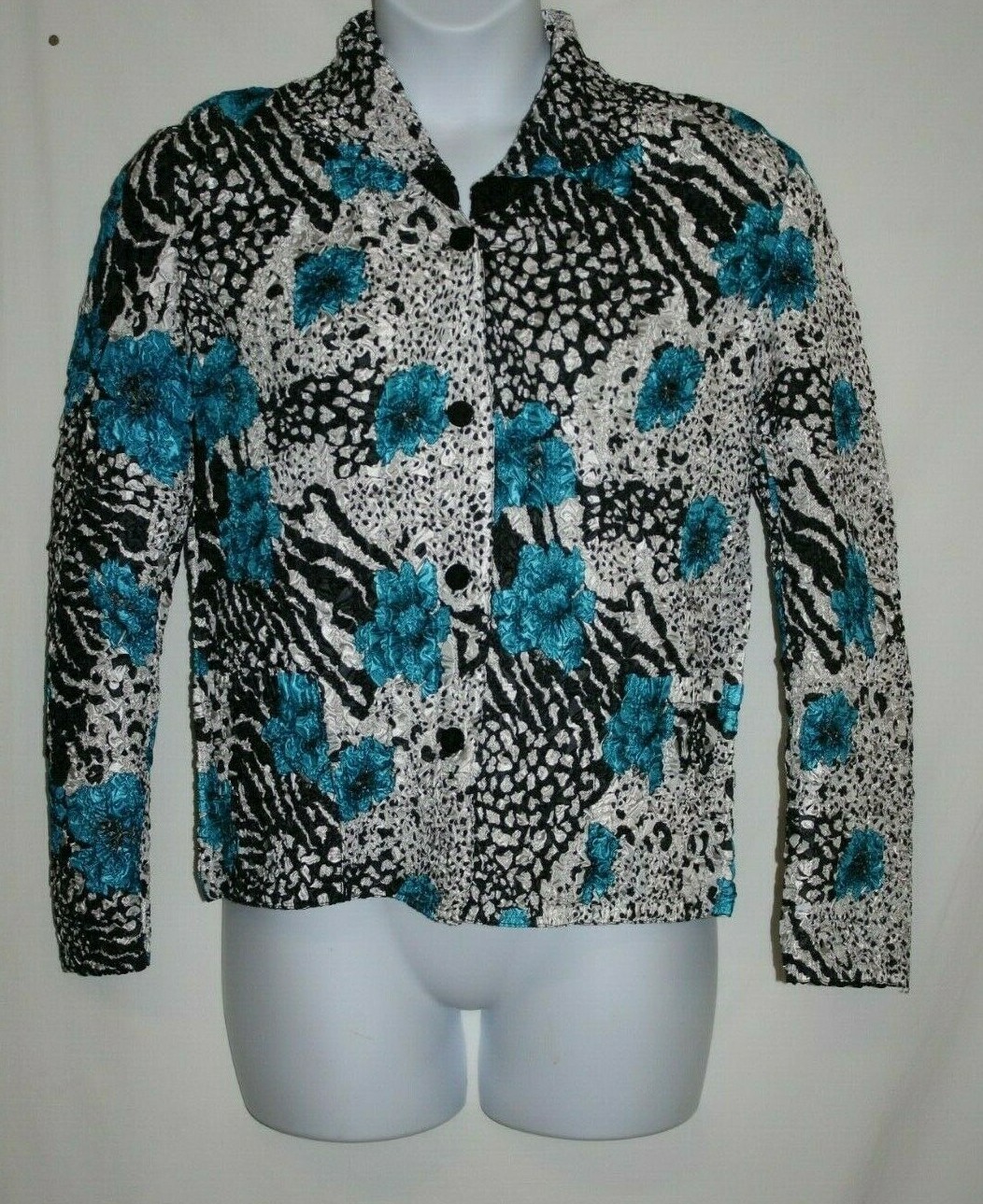 Napa Valley Misses SMALL Blouse Turquoise Aqua Black Reversible Puckered Stretch