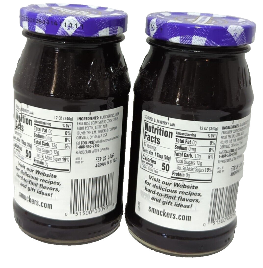 Smucker's Seedless Blackberry Jam, 12 Oz each Lot 2 X BB 2/26