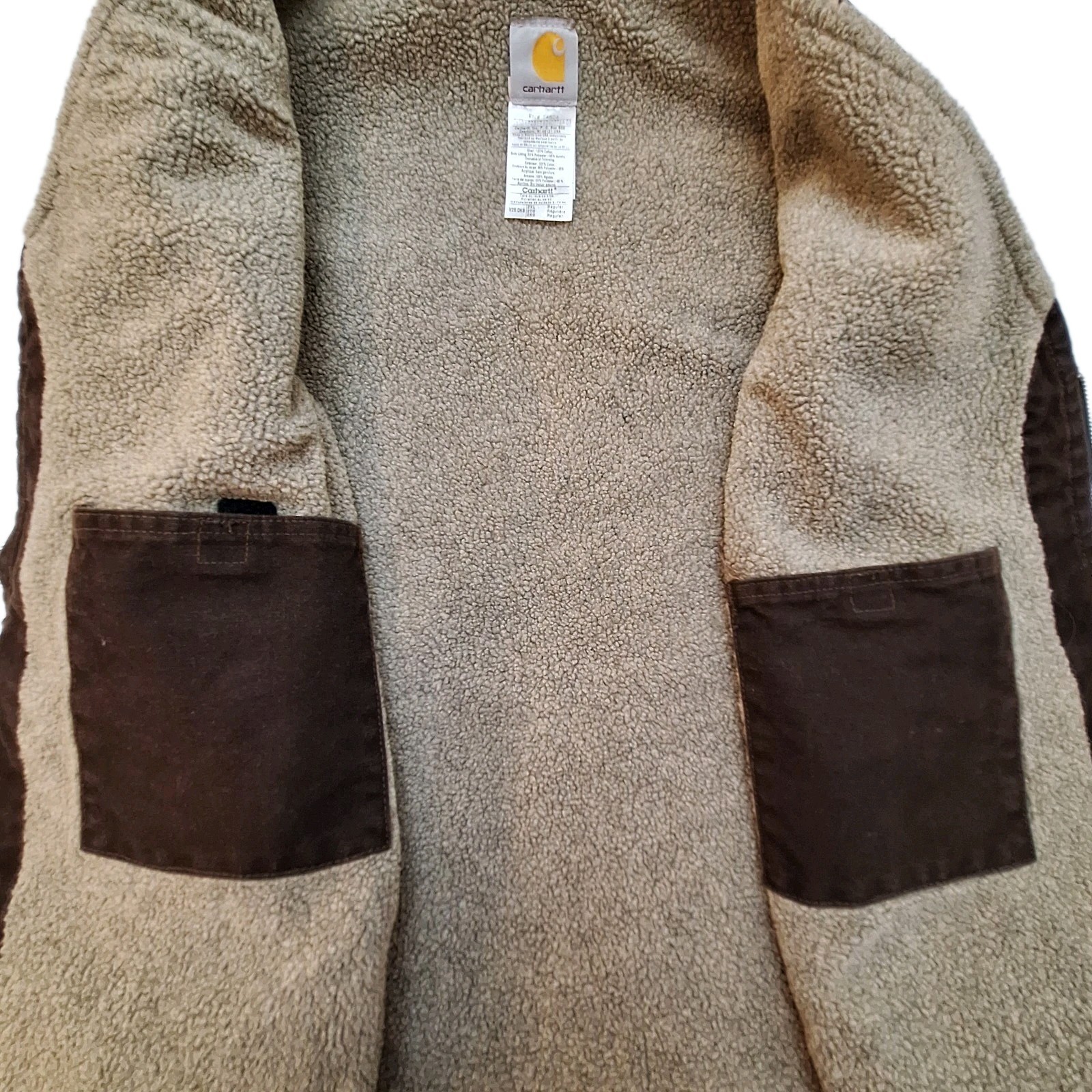 Carhartt Sherpa Lined Mens Zip Chore Coat Vest Canvas Dark Brown Sz 2XL V26 DKB