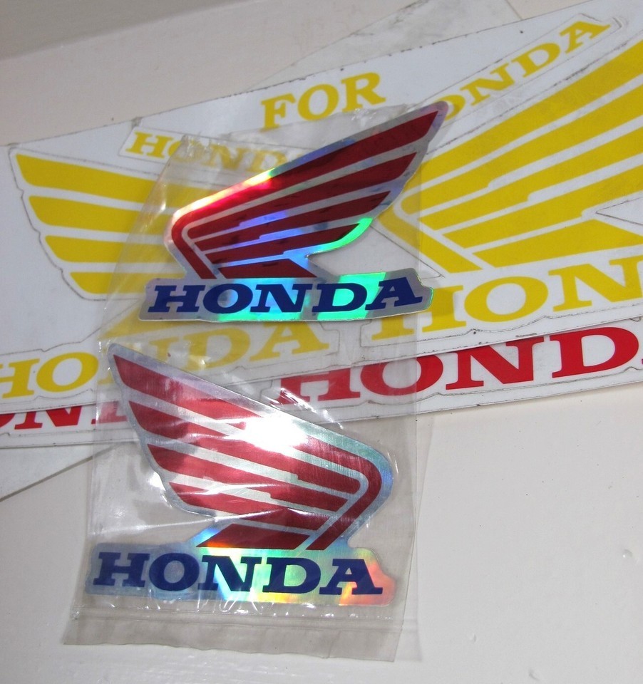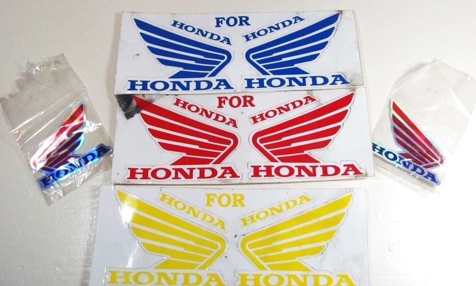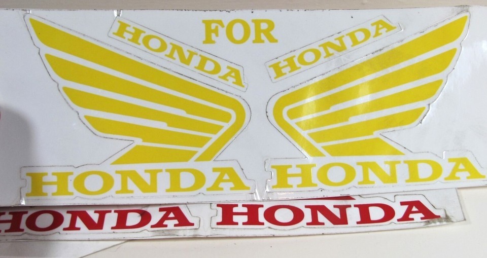 Honda Motorcycle Wings Blue Yellow Red Retro Vintage Vinyl Sticker Tank Decals