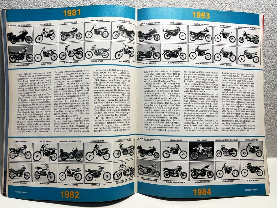 Cycle World Oct 1985 Annual 10 Best Bikes of the Year Awards Motorcycles 400WRX