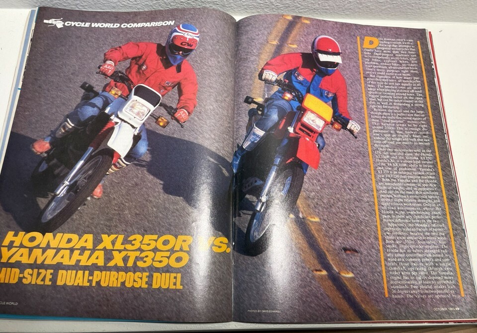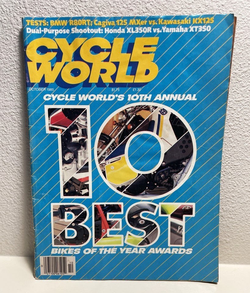 Up for sale is this October 1985 issue of Cycle World featuring is 10th annual Bikes of Year Awards. Includes dual-purpose shootout with Honda XL350R vs Yamaha XT350. Includes some prior year bikes of the year.