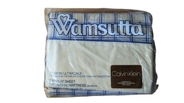 This Vintage Wamsutta Designer Workshop Calvin Klein handkerchief plaid full flat sheet is a charming addition to any bedroom. Made from a blend of 50% polyester and 50% cotton, this rectangular sheet features a checkered cream and blue color pattern, perfect for adding a touch of cottage style to your decor. With dimensions of 75" in length and 66" in width, this machine washable flat sheet is from the United States and is ideal for teens, adults, and kids alike. The Wamsutta brand and 180 thread count ensure quality and durability in this unique and classic bedding piece.