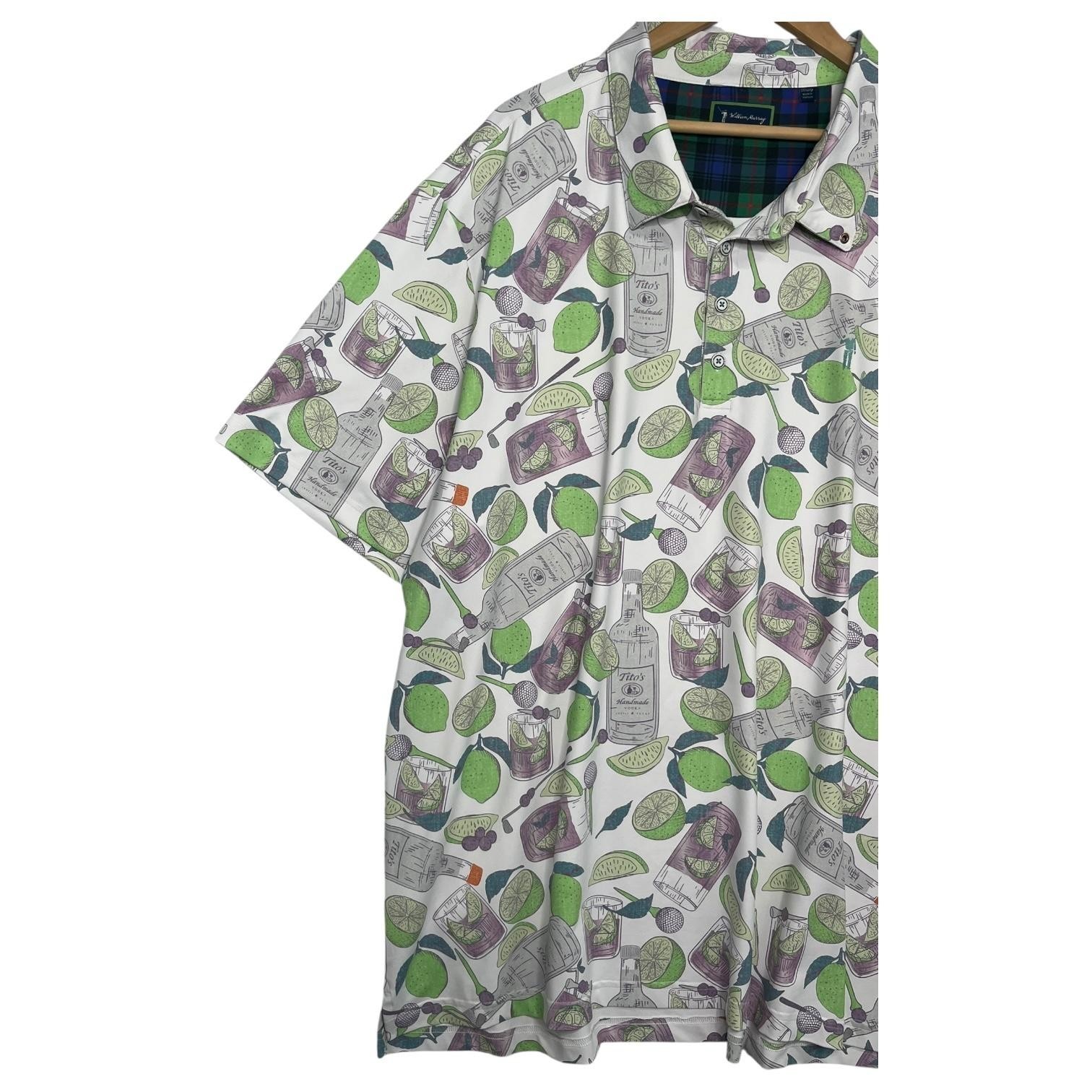 William Murray Polo Shirt Mens 3XL White Cocktail Lime Titos Vodka Print Golf