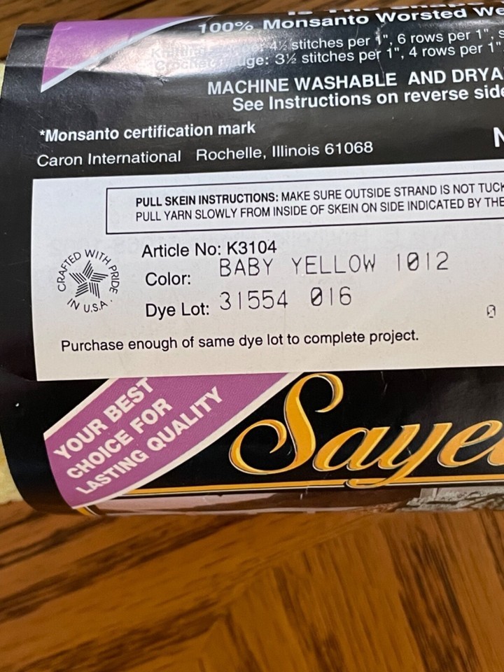 Discontinued Caron SAYELLE Worsted weight Acrylic yarn color 1012 Baby Yellow