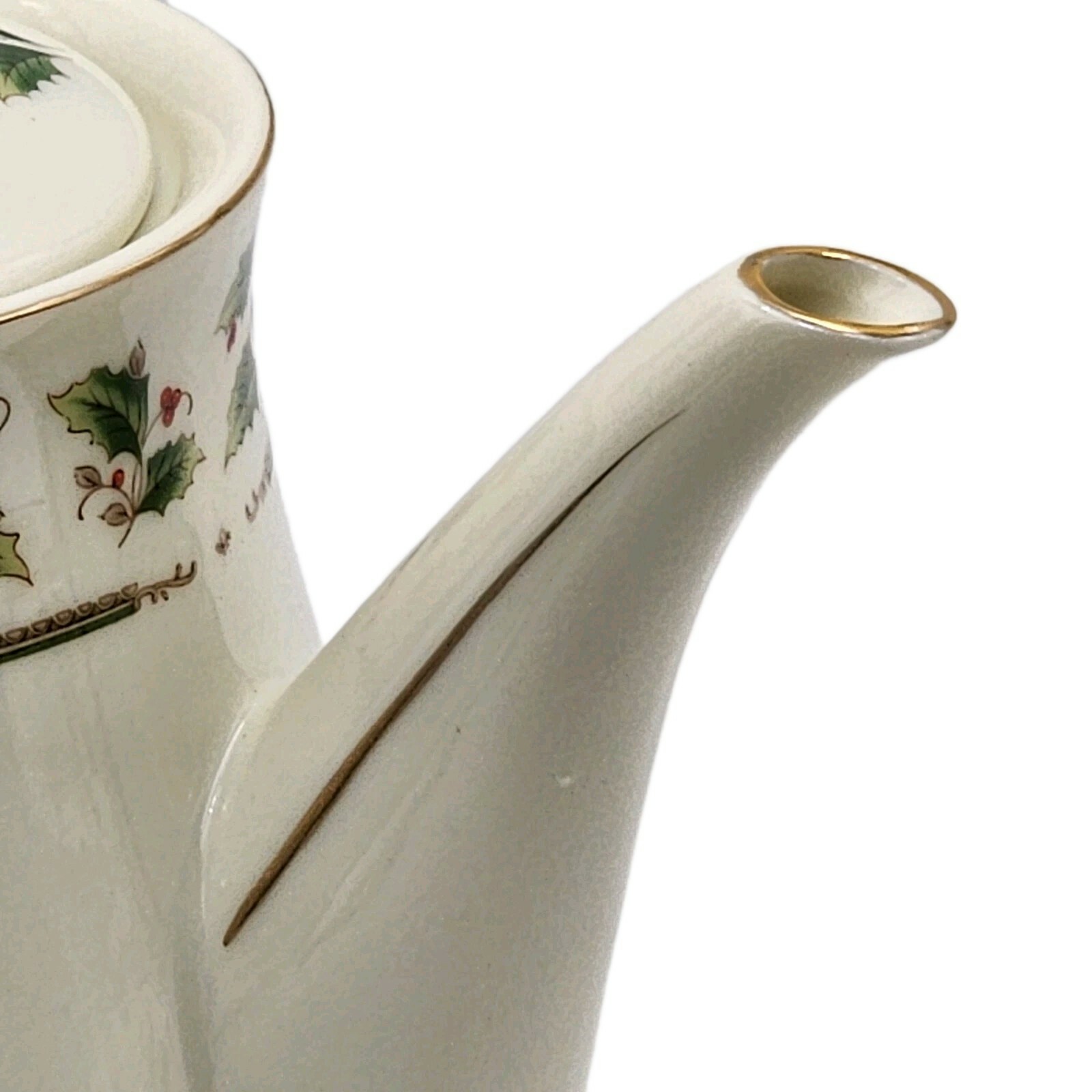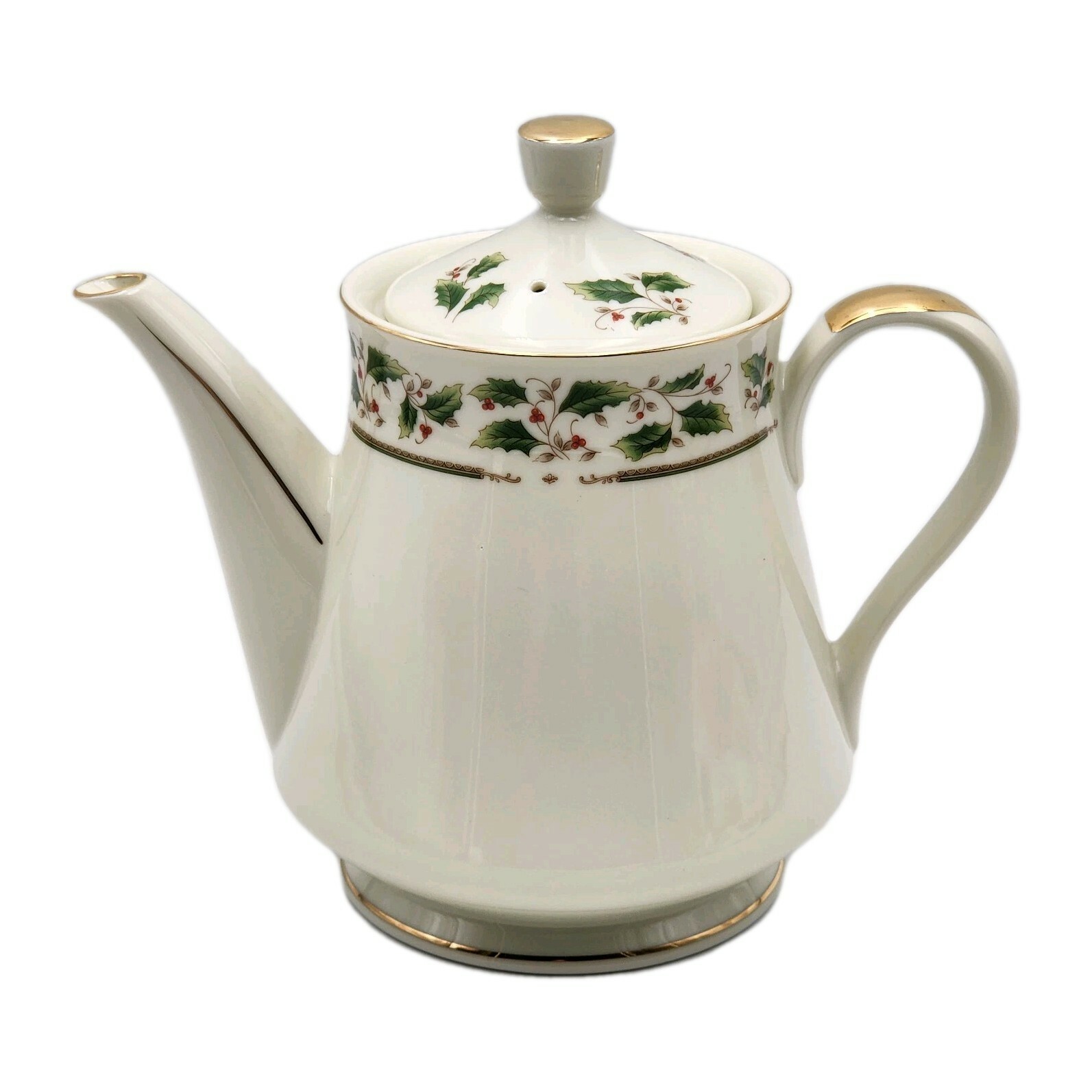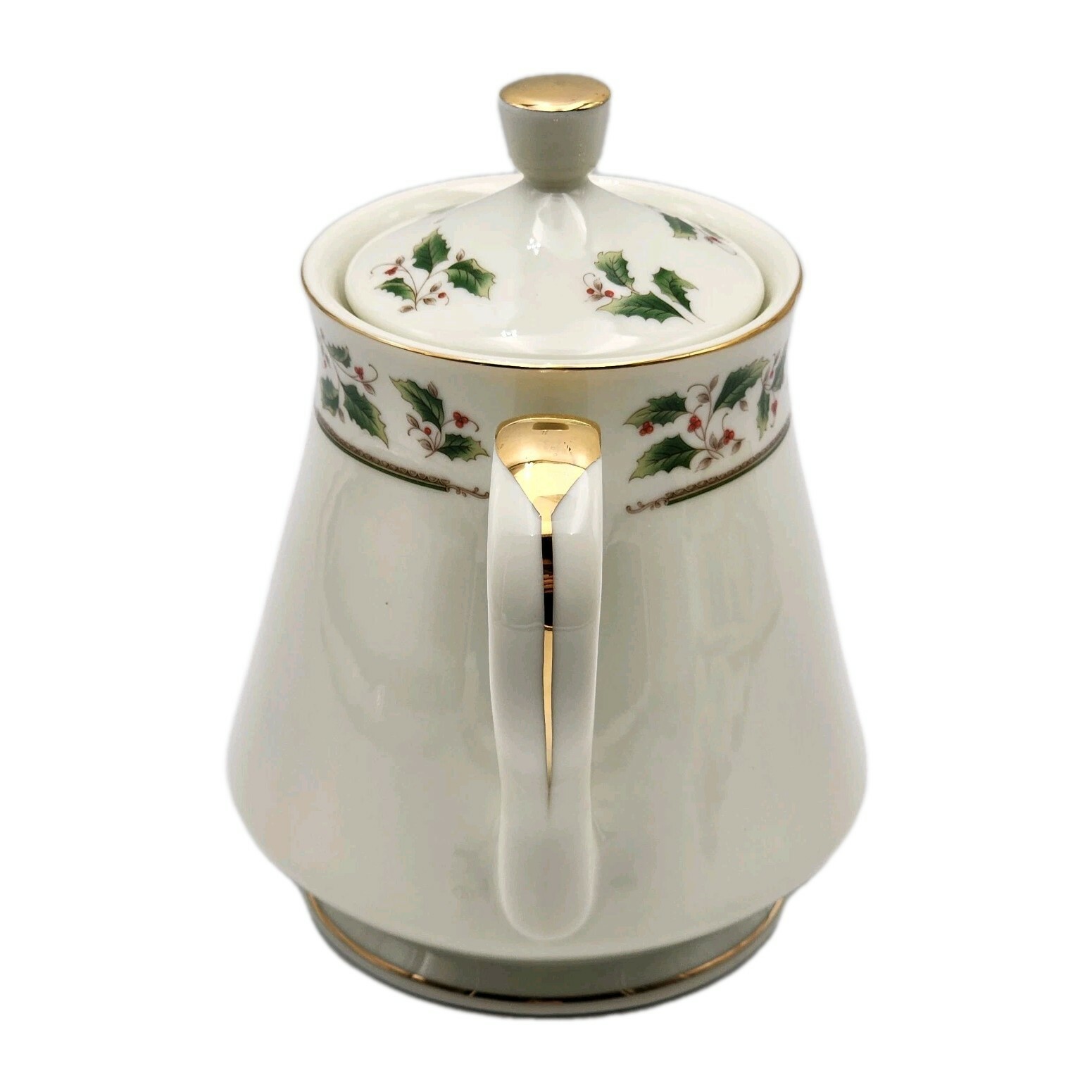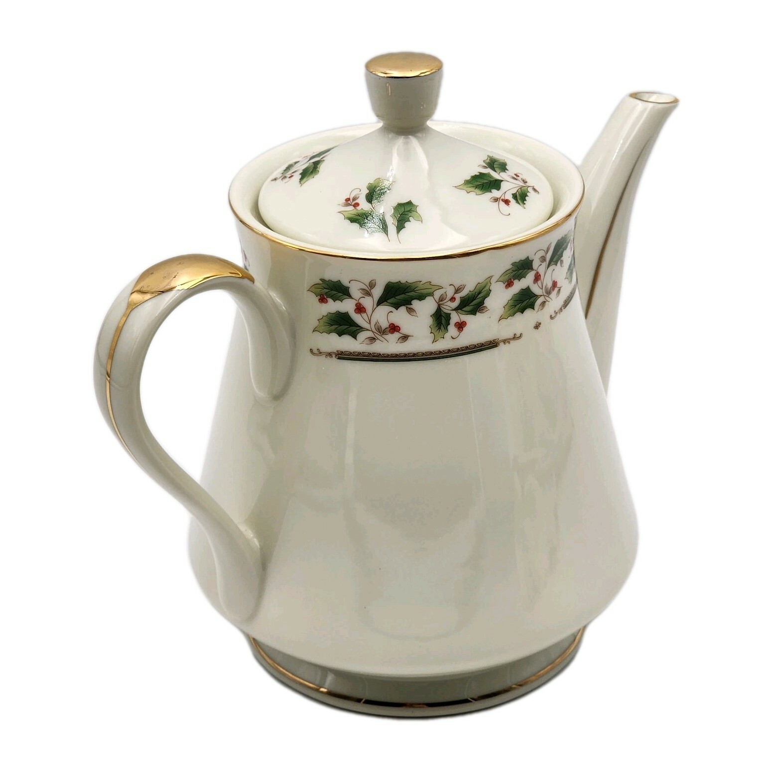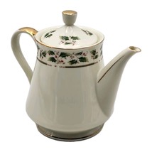 Royal Limited Holly Holiday Porcelain Teapot W/ Lid Gold Accents VTG 1987 Boxed