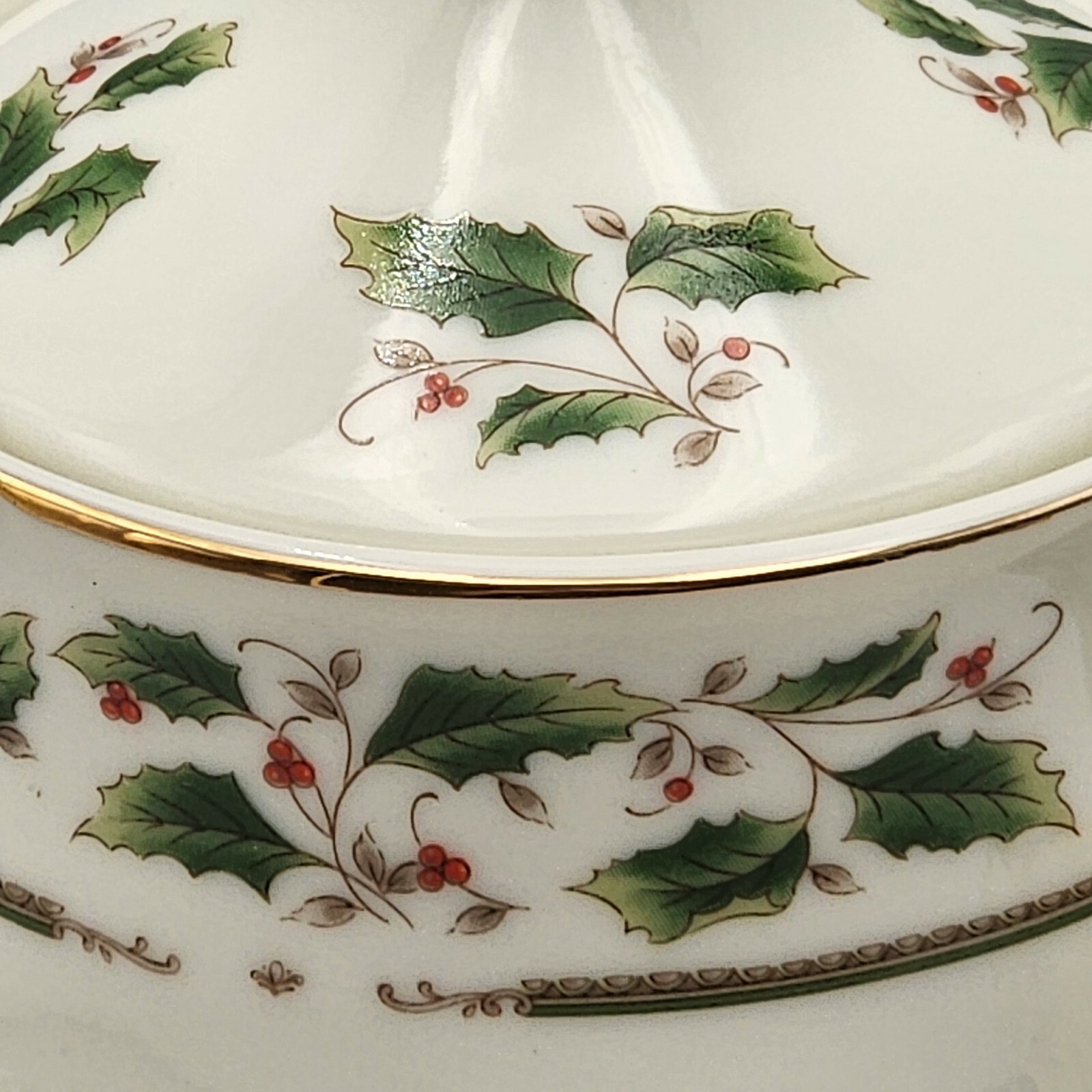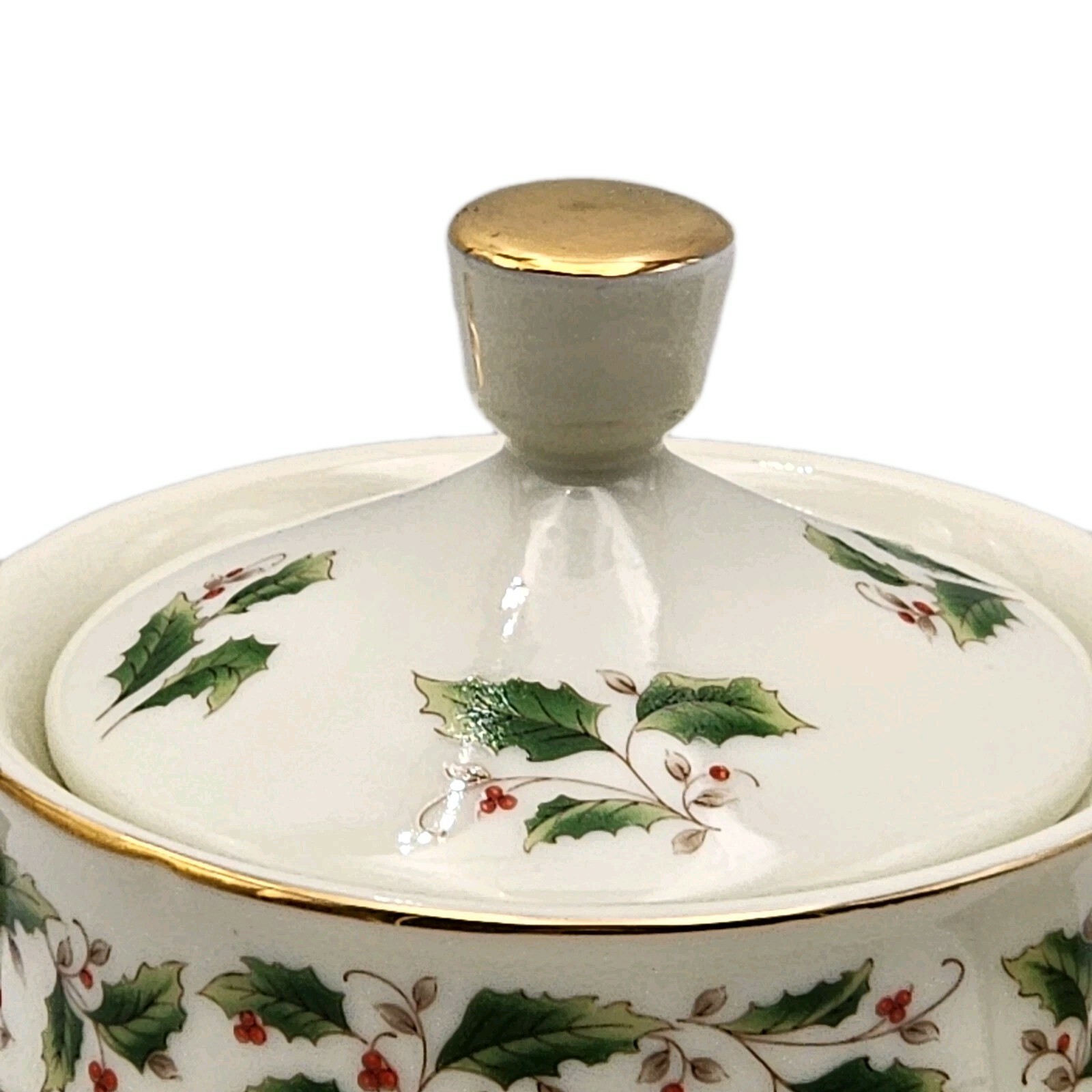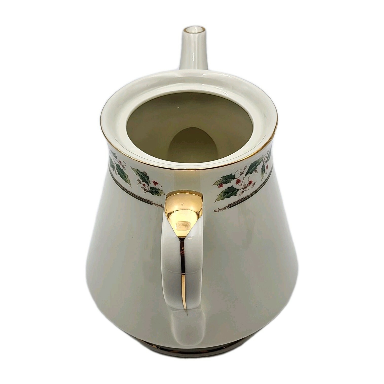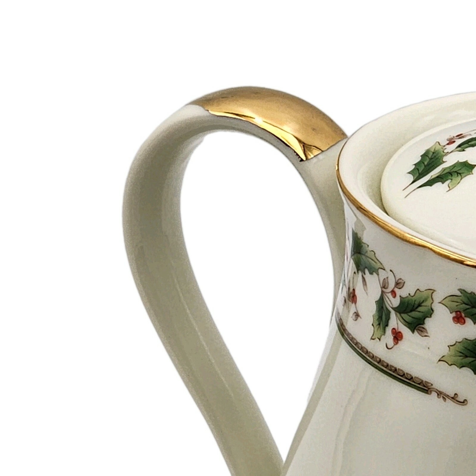 Royal Limited Holly Holiday Porcelain Teapot W/ Lid Gold Accents VTG 1987 Boxed