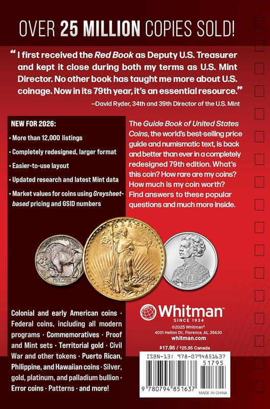 Since 1946, collectors around the globe have relied on this trusted guide for its grade-by-grade coin values, historical insights, detailed specifications, high-resolution photographs, and accurate mintage data. Wondering, What?s this coin? How rare are my coins? How much are they worth? The 2026 edition of The Official Red Book, affectionately known as the Red Book, answers these questions and so much more.
